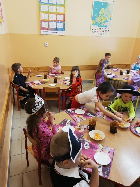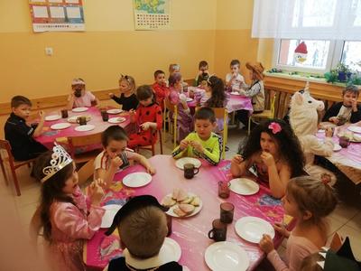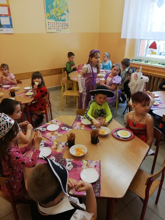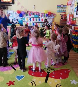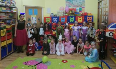 4 lutego w naszym przedszkolu odbył się bal karnawałowy. Dzieci prezentowały piękne stroje i bawiły się przy dźwiękach ulubionych przebojów: " Woogie-Boogie", "Pszczółka Maja", "Mucha w Mucholocie", "Jedziemy do zoo", "Jedzie pociąg z daleka" oraz innych. Wesołej zabawie towarzyszyły liczne konkursy: taniec z balonami, podaj dalej, taneczny korowód, taniec z apaszką oraz wesołe baloniki. Ponadto malowaliśmy farbami karnawałowe balony oraz rozdawaliśmy nagrody wszystkim przedszkolakom za wspaniałą zabawę. Nie zabrakło również poczęstunku w postaci owoców i zdrowych przekąsek. Balik był dla wszystkich dzieci wyjątkowym wydarzeniem, mogły przebrać się w piękne stroje i wspólnie z przyjaciółmi tańczyć i bawić się przy ulubionych piosenkach.