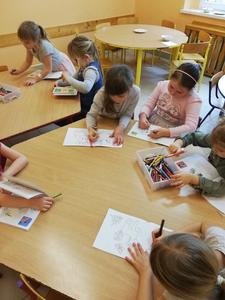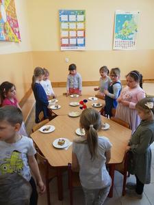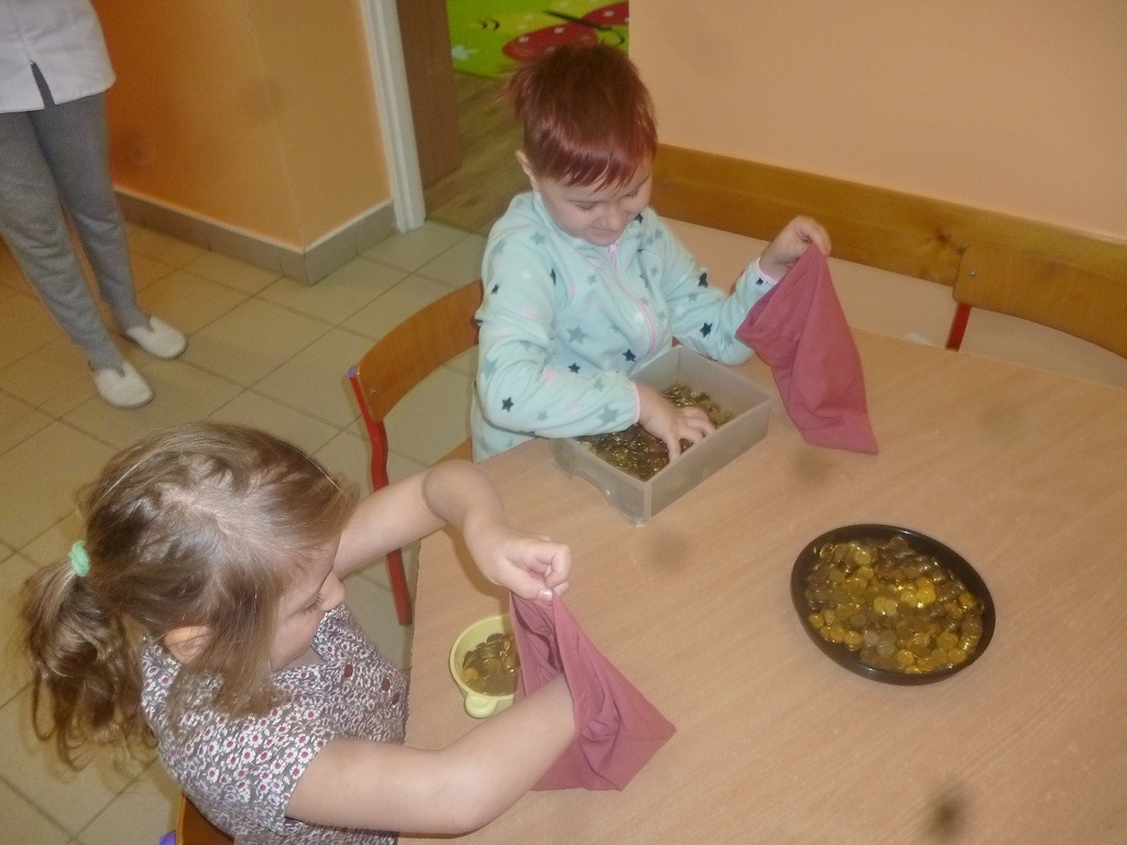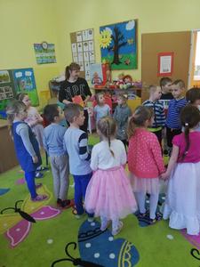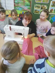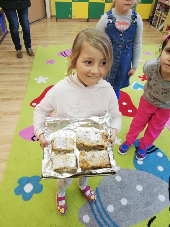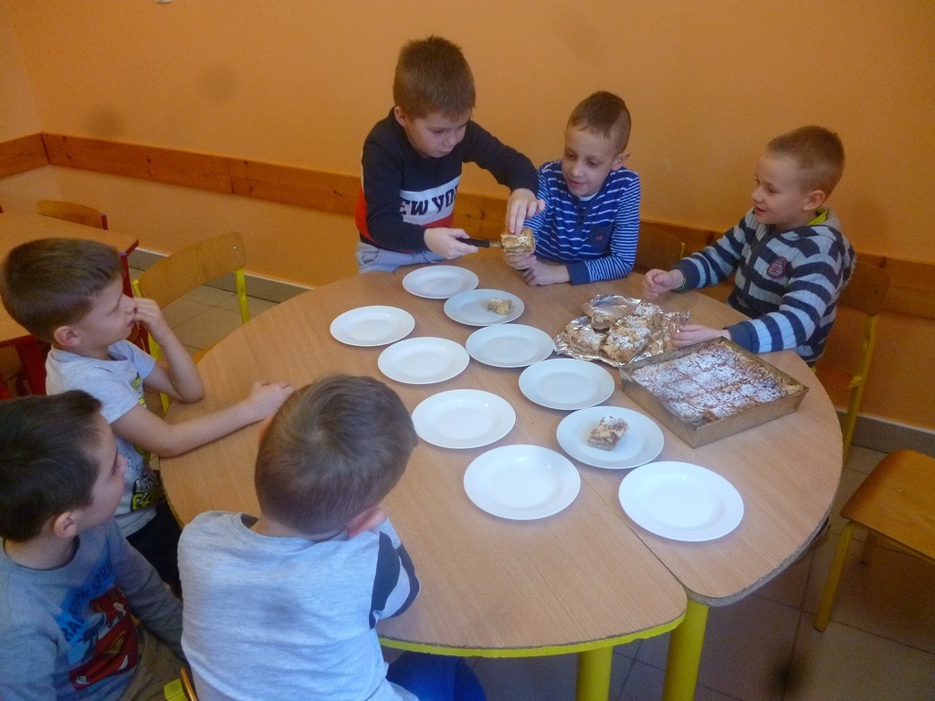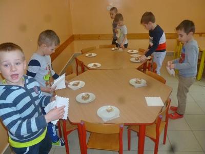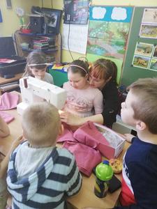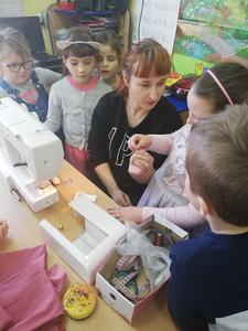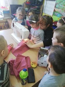 W związku z Dniem Kobiet dzieci rozmawiały w przedszkolu na temat zawodów wykonywanych przez kobiety. Przy tej okazji przybyła do nas mama Bartka, która jest z zawodu krawcową. Pokazała dzieciom w jaki sposób posługuje się maszyną do szycia. Uszyła praktyczne worki, do których potem dzieci wsypały monety przyniesione na akcję "Góra Grosza". Dziękujemy pani Mireli za poświęcony nam czas i ciekawie przeprowadzoną prezentację. 8 marca jest również świętem dziewczynek, dlatego nasi chłopcy przygotowali dla nich miłą niespodziankę w postaci poczęstunku. Bardzo chętnie np. łuskali orzechy, które potem razem z jabłkami i szarlotką (dziękujemy za nią mamie Tereski) wszyscy ze smakiem zjedli. Dziewczynki otrzymały jeszcze w prezencie od chłopców kolorowanki, o które postarały się mamy z Komitetu Rodzicielskiego.