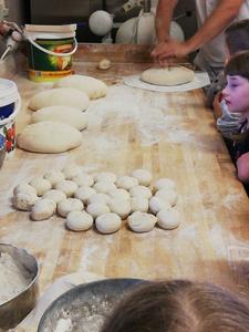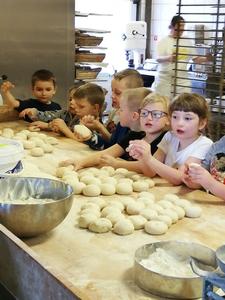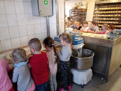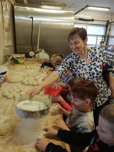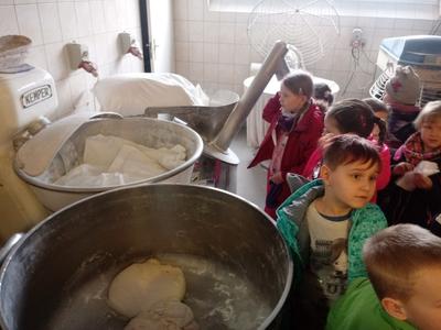 15 marca obchodzony jest Dzień Piekarzy i Cukierników. W tym dniu przedszkolaki wybrały się do piekarni pana Jerzego Reka, która mieści się w Radlinie. Dzieci zapoznały się z zawodem piekarza i cukiernika oraz złożyły pracownikom piekarni życzenia i wręczyły laurkę. Zostały tam bardzo miło przyjęte, bo na samym początku czekał na nie poczęstunek w postaci pysznych pączków. Przedszkolaki obserwowały cały cykl powstawania chleba, urządzenia potrzebne do jego produkcji oraz ogromny piec, w którym wypiekany jest chleb i bułki. Najwięcej radości sprawiła dzieciom możliwość zagniatania ciasta na bułki. Wszyscy z wielką ochotą zabrali się do pracy. Po powrocie do przedszkola dzieci miło wspominały ten dzień, tym bardziej że mogły jeszcze na podwieczorku delektować się podarowanymi przez właściciela piekarni babkami. Dziękujemy panu Rekowi za możliwość poznania pracy w piekarni oraz na jego ręce składamy serdeczne życzenia zdrowia, pomyślności oraz sił dla wszystkich piekarzy i cukierników. Dzięki wizycie w piekarni dzieci poszerzyły swoją wiedzę i zainteresowania na temat zawodów piekarza i cukiernika.
