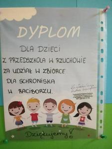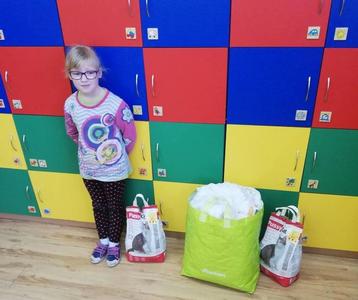W dniach od 17 do 21 marca w naszym przedszkolu odbyła się zbiórka artykułów dla zwierząt z raciborskiego schroniska. Zebrane przez dzieci dary przekazaliśmy do Stowarzyszenia Artystyczno - Społecznego „Pracownia Przyszłości”, które było organizatorem zbiórki. W niedzielę 24 marca wolontariusze ze Stowarzyszenia „Pracownia Przyszłości” dostarczyli do schroniska zebrane artykuły - w sumie 50 kg żwirku, 20 kg karmy dla psów oraz 5 worków koców, ręczników i prześcieradeł. Oprócz tego wyprowadzono pieski na spacer, co z pewnością było dla nich miłą odmianą. Serdecznie dziękujemy przedszkolakom za zaangażowanie w akcję i pokazanie, że los zwierząt nie jest im obojętny.