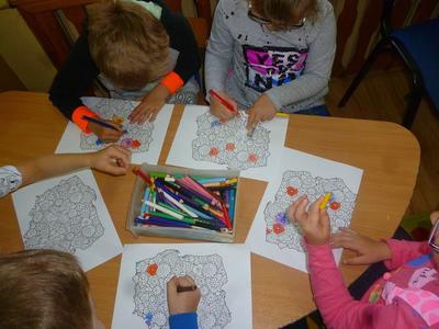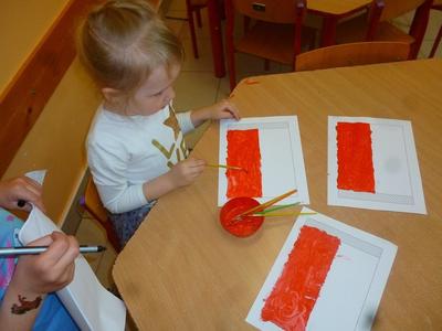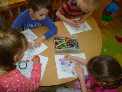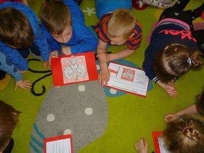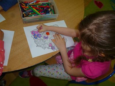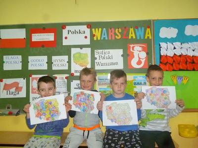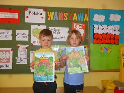 Początek maja to czas upamiętniający wydarzenia narodowe. Z tej okazji dzieci uczyły się rozpoznawania symboli narodowych: flagi, godła i hymnu. Przedszkolaki poznały legendy: „Wars i Sawa” oraz „Jak to ze Smokiem Wawelskim było”. Recytowały wiersze M. Łaszczuk „Znak” oraz Cz. Janczarskiego „Barwy ojczyste”. Wskazywały na mapie Polski charakterystyczne miejsca i nazywały największe rzeki, morze i góry. Dzieci podczas zajęć muzycznych śpiewały piosenki „ Płynie Wisła, płynie” i „Jesteśmy Polką i Polakiem”, słuchały również muzyki F. Chopina. Wykonały także prace plastyczne, ozdabiały kwiatami kontury mapy Polski i malowały flagi. Zrealizowane zajęcia miały na celu rozwijanie wśród dzieci przynależności narodowej.