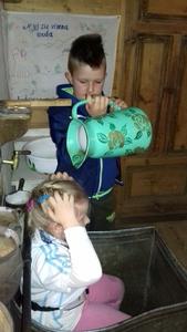 Kolejnym punktem wycieczki były zajęcia warsztatowe w chacie chlebowej w Górkach Małych. Tam uczniowie poznali produkcję chleba i zobaczyli maszyny rolnicze z dawnych lat. Odbyła się tam degustacja wykonanych przez nich wypieków. Po zajęciach warsztatowych odbyło się ognisko z pieczeniem kiełbasek. Wycieczka wszystkim uczniom bardzo się podobała.