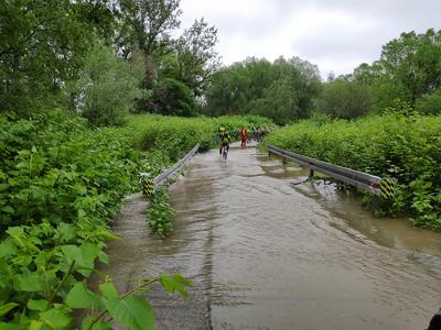 Kolejny, majowy poranek niestety powitał nas deszczem. Po porannej toalecie i obfitym śniadaniu uczestnicy projektu wyruszyli na trasę rajdu rowerowego po pograniczu polsko – czeskim. W trakcie rajdu zatrzymaliśmy się przy wieży widokowej w Chałupkach. Dzieci chętnie wspięły się na szczyt, aby podziwiać piękno otaczającej przyrody. Nie obyło się bez ekstremalnych przygód – przekonaliśmy się jak groźnym i niebezpiecznym żywiołem może być woda. Cali i zdrowi, no może trochę przemoknięci, dotarliśmy na obiad, gdzie podczas rozmów padły deklaracje dalszej współpracy. W tak optymistycznych nastrojach pożegnaliśmy się z naszymi czeskimi partnerami.