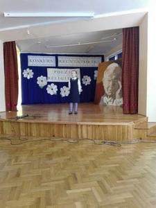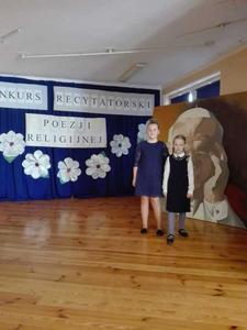 24 maja dwie uczennice: Magdalena Wszołek i Hanna Twardzik reprezentowały naszą szkołę w III POWIATOWYM I REJONOWYM KONKURSIE RECYTATORSKIM POEZJI RELIGIJNEJ I METAFIZYCZNEJ, który odbył się w Szkole Podstawowej nr 18 w Raciborzu. Celem konkursu było kształtowanie wyobraźni poetyckiej, zainteresowanie młodych ludzi poezją jako alternatywą dla mediów społecznościowych oraz promowanie talentów.Recytatorzy prezentowali jeden dowolnie wybrany utwór poetycki - Magda Wszołek uczennica klasy IV przedstawiła utwór ks. Jana Twardowskiego "Podziękowanie", a Hanna Twardzik, również uczennica klasy IV, deklamowała wiersz Antonety Bednarek "Wszechmoc Boża". Poziom konkursu był bardzo wysoki. Wszystkich uczestników było 40 w czterech kategoriach wiekowych.Cieszymy się, że nasze uczennice pięknie się zaprezentowały, choć nie stanęły na podium. Każdy uczestnik konkursu otrzymał nagrodę książkową. Gratulujemy i życzymy dalszych sukcesów.Jolanta Tatura