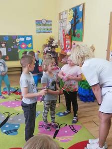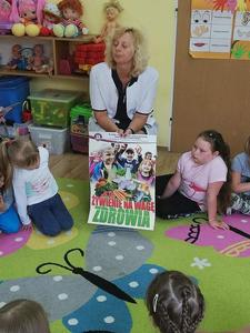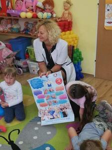 Aby docenić potrzebną i trudną pracę pielęgniarki, zaprosiliśmy do przedszkola naszą panią higienistkę. Z rozmowy z nią dzieci dowiedziały się o jej obowiązkach. Korzystając z okazji przedszkolaki utrwaliły swoją wiedzę na temat profilaktyki prozdrowotnej (sposobów zapobiegania chorobom), zasad zdrowego odżywiania i znaczenia dokładnego mycia rąk zwłaszcza po skorzystaniu z toalety oraz przed jedzeniem. Jako że w czasie wizyty higienistki realizowany był program przedszkolnej edukacji antytytoniowej „Czyste powietrze wokół nas” pani Iza uczuliła dzieci na szkodliwość dymów, w tym dymu tytoniowego. Podkreślała, aby dzieci nie przebywały w zadymionych pomieszczeniach i w pobliżu osób palących papierosy. Dziękujemy pani higienistce za poświęcony czas oraz z okazji jej święta życzymy wszystkiego, co najlepsze.
