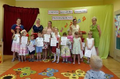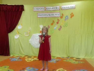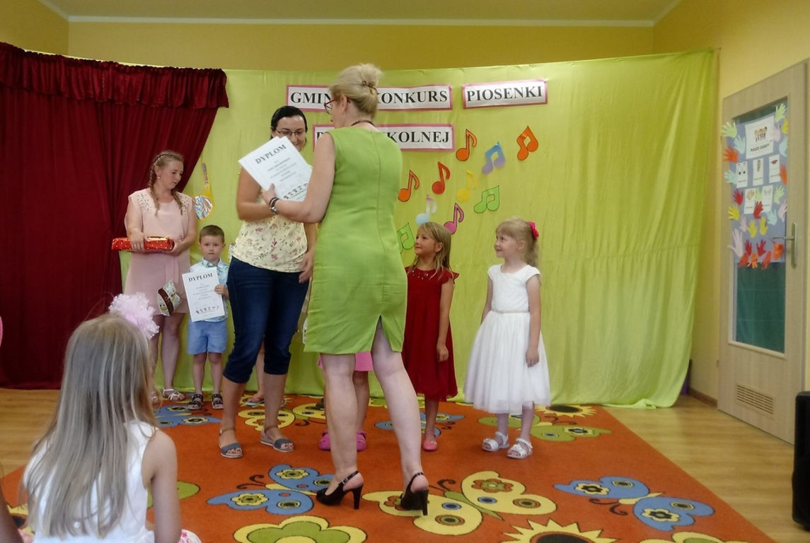 13 czerwca 2019 r. Teresa, Paulina i Zosia reprezentowały nasze przedszkole na XV Festiwalu Piosenki Przedszkolnej "Śpiewać każdy może", który odbył się w przedszkolu w Kobyli. Celem konkursu było zachęcanie do występów na scenie, popularyzacja piosenki przedszkolnej, wyzwalanie u dzieci radości śpiewania, promocja osiągnięć przedszkoli w sferze działalności muzycznej oraz rozwijanie współpracy pomiędzy przedszkolami naszej gminy. Teresa zaśpiewała piosenkę pt. ,,Idzie do nas wiosna", Paulina wykonała utwór ,,Ziemia to wyspa zielona" a Zosia - ,,W zieleni łąka majowa". Wszyscy uczestnicy konkursu otrzymali dyplomy i upominki ufundowane przez Wójta Gminy Kornowac.