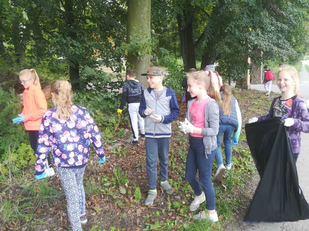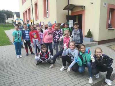 Uczniowie klasy I sprzątali teren szkoły, dzieci z klasy II udały się ulicą K. Miarki do ulicy Granicznej, klasa III wysprzątała ulicę K. Miarki, kl. IV zajęła się terenem wokół GOK-u, kl.V poszła ulicą Rybnicką do skrzyżowania, a kl. VI na ul. Boczną.