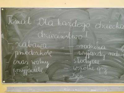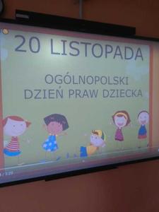 20 listopada świętowaliśmy razem z UNICEF Międzynarodowy Dzień Praw Dziecka. Ten dzień stał się wspaniałą okazją do uczczenia powstania najważniejszego dokumentu stanowiącego o prawach najmłodszych. Hasłem przewodnim tegorocznych obchodów były słowa: ”DLA KAŻDEGO DZIECKA, DZIECIŃSTWO”. W tym dniu w każdej klasie przeprowadzone zostały zajęcia poświęcone dzieciństwu. Zorganizowano m.in. pogadanki dla uczniów, prezentacje, projekcje filmów, zabawy z wykorzystaniem quizów Kahoot o prawach dzieci, rozwiązywano karty pracy na temat Konwencji, przygotowano gazetki ścienne, śpiewano piosenki. Wszystkie dzieci w szkole poczuły, że to ich święto – święto praw dziecka. Dzieci i nauczyciele ubrali się tego dnia na niebiesko, ponieważ jest to kolor UNICEF symbolizujący jedność z dziećmi na całym świecie. Nasze sale lekcyjne również były niebieskie.