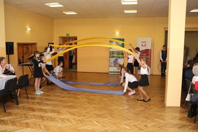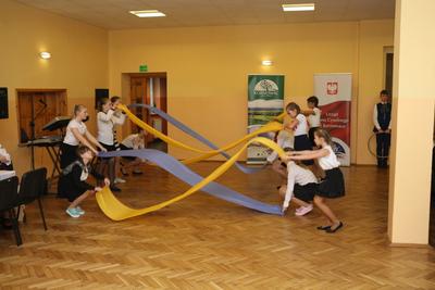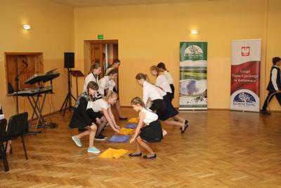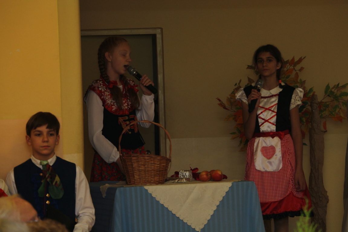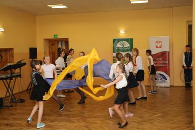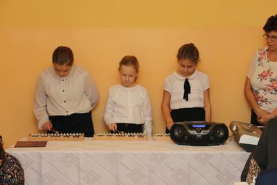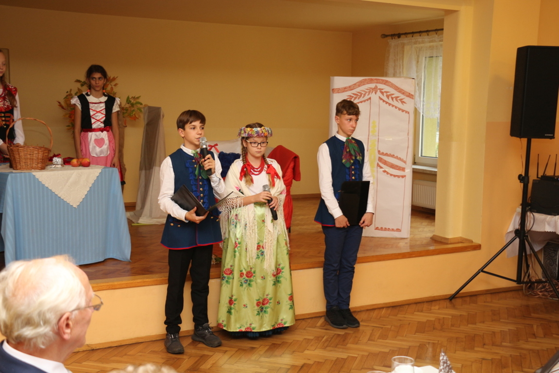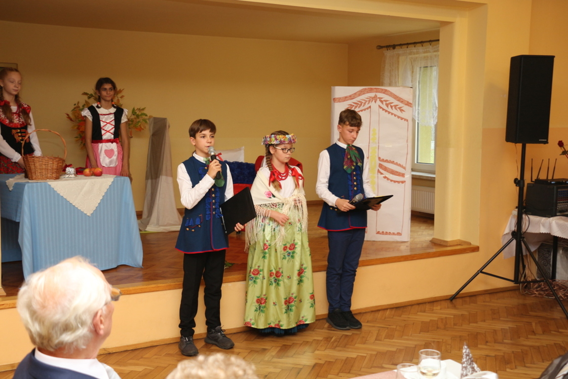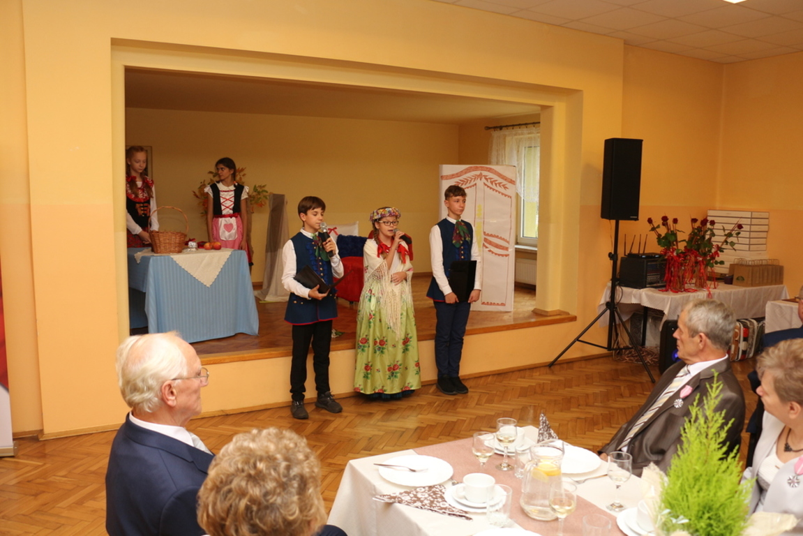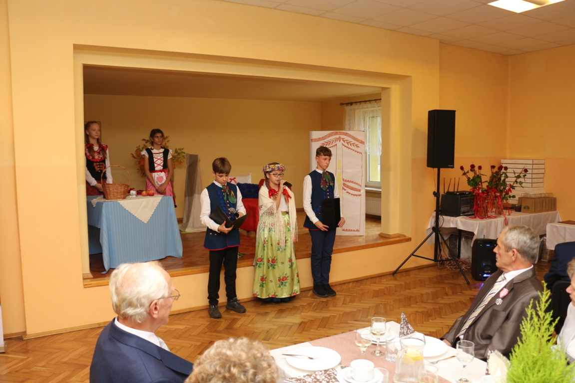 Występy uczniów Szkoły Podstawowej w Rzuchowie w czasie uroczystości Złotych Godów w Gminie Kornowac