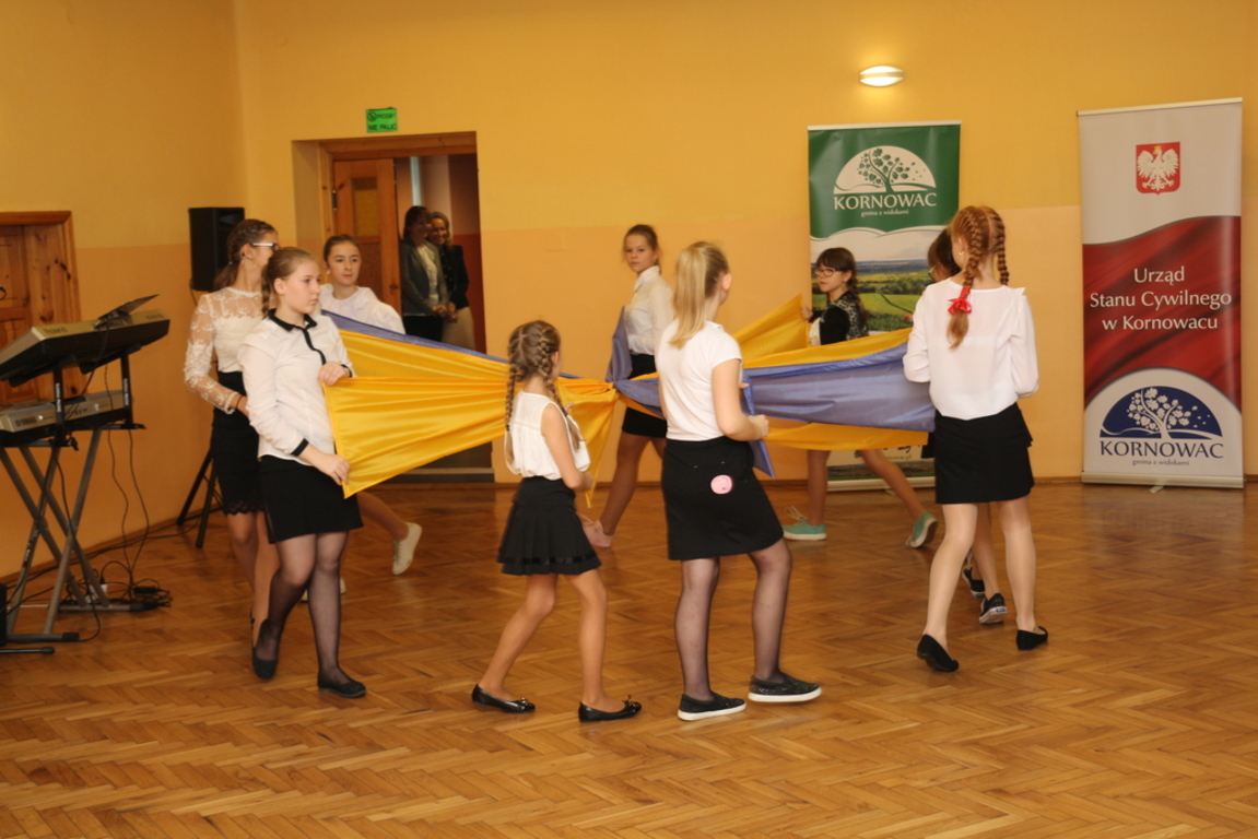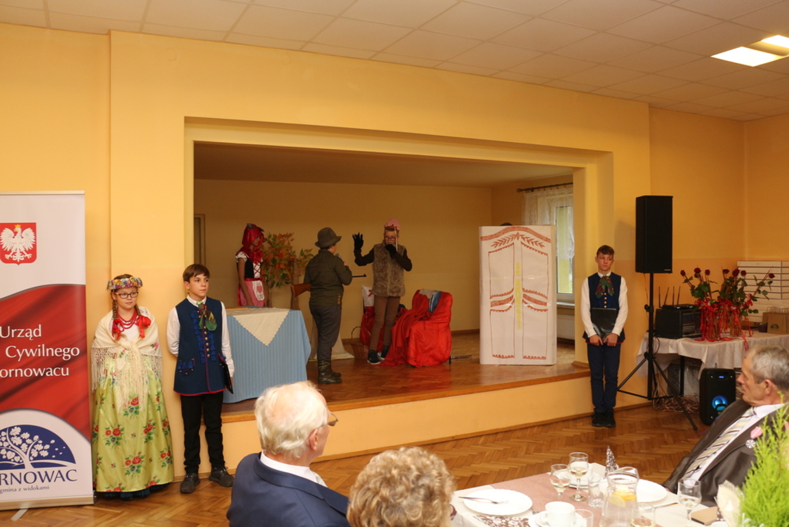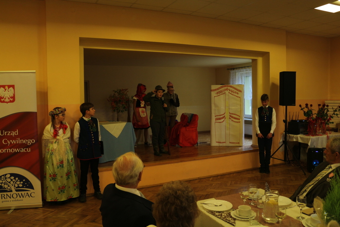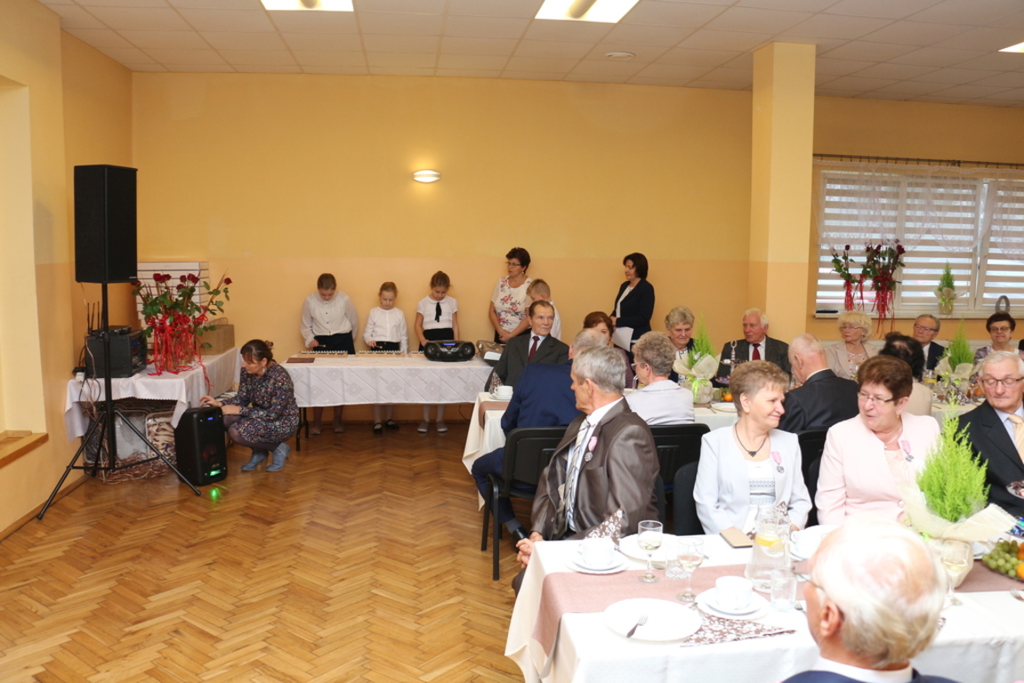 21 listopada 2019 r. uczniowie naszej szkoły mieli zaszczyt i przyjemność wystąpić z programem artystycznym przed małżonkami Gminy Kornowac obchodzącymi swój jubileusz pożycia małżeńskiego. Uroczystość odbyła się w Sali Gminnego Ośrodka Kultury w Rzuchowie. Uczniowie złożyli Jubilatom życzenia, przedstawili komedię w gwarze śląskiej „Bojka o Czerwonym Kapturku”, zagrali na instrumentach muzycznych „Sto lat” oraz zaprezentowali układ taneczny z wstążkami do utworu Krystyny Giżowskiej „Złote obrączki”. Szanownym Jubilatom składamy najserdeczniejsze życzenia: