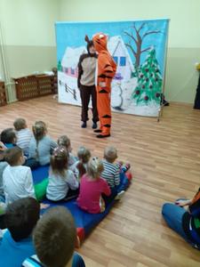 W dniu 02.12.2019 r. w ZSP w Rzuchowie odbyło się przedstawienie teatralne w wykonaniu aktorów Teatru Maska z Krakowa. W przedstawieniu brali udział przedszkolacy oraz uczniowie kl. I – III. Dzieci poznały postać samolubnego tygryska, który pod wpływem renifera i żaby zmienił swoje postępowanie. Przedstawienie było bogate w akcenty wychowawcze oraz przybliżyło przemiłą atmosferę zbliżających się Świąt Bożego Narodzenia.