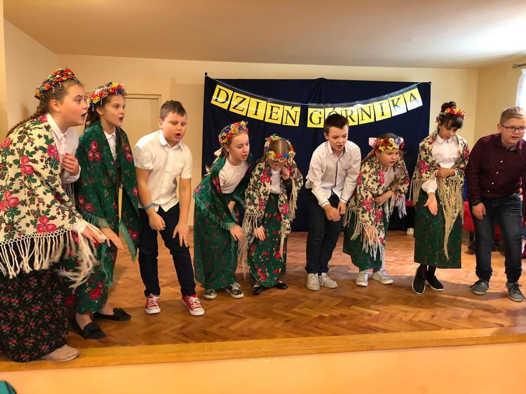 Uczniowie klasy I deklamowali wierszyki w gwarze śląskiej. Dodatkowym elementem występu był taniec, który samodzielnie przygotowały uczennice klasy IV. Dzieci z klasy III zaśpiewały piosenki w gwarze śląskiej, a uczniowie klasy II krótko opowiedzieli, gdzie możemy znaleźć węgiel, do produkcji czego jest używany i jak bardzo jest nam potrzebny. O pracy górnika opowiedzieli w swojej inscenizacji uczniowie klasy IV i zaśpiewali piosenkę „Hej w kopalni”. W humorystyczny sposób uczniowie klasy VI przedstawili baśń o Czerwonym Kapturku. Cała uroczystość została uatrakcyjniona tańcami i grą na keyboardzie w wykonaniu ucznia klasy III Jakuba.