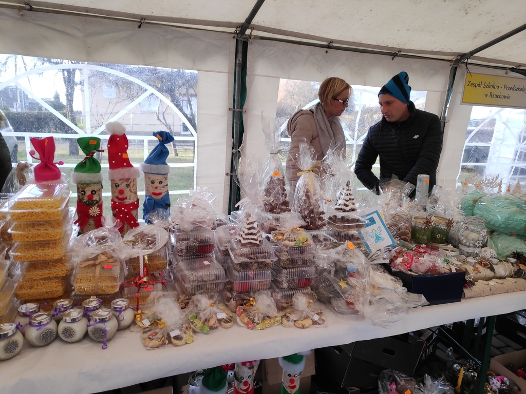 Mimo braku zimowej aury przy boisku KS Kornowac zapanował magiczny klimat, bo już po raz kolejny odbył się tam w niedzielę Kiermasz Świąteczny. Wśród aromatu grzanego wina oraz smakołyków przygotowanych przez Koła Gospodyń Wiejskich czekało na odwiedzających wiele atrakcji. Nasi uczniowie wraz z rodzicami wykonali piękne i oryginalne ozdoby i dekoracje świąteczne oraz przygotowali różne smakołyki, m.in.: pyszne, domowe ciasteczka, smalec, swojski makaron i wiele innych, które sprzedawano podczas kiermaszu. Odwiedzającym umilił czas występ przedszkolaków i uczniów ZSP w Rzuchowie, którzy zaśpiewali znane pastorałki i kolędy. Bardzo dziękujemy wszystkim, którzy pomogli w organizacji kiermaszu i przygotowaniu stoiska naszej placówki.