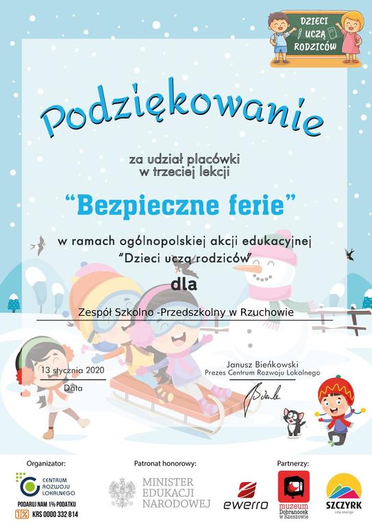 Kodeks postępowania w czasie zimy - bezpieczne ferie Galeria zdjęć Załączniki zal_2__plakat_a2_bezpieczne_ferie.jpg [101.15 kB] !_druk_ulotka_gis_210x210mm_ferie.pdf [337.39 kB] bezpieczne_ferie_zimowe_onlinevideocuttercom.mp4 [28.22 MB] dur_crl_men_012020_l3.pdf [1.17 MB] Powiązane wiadomości Szkolny konkurs na najładniejszą ozdobę świąteczną Opłatek w przedszkolu Ostatni szkolny dzień 2019 roku przy dźwiękach... Kodeks postępowania w czasie zimy - bezpieczne... Plan lekcji - do pobrania Kampania społeczna 4U Drukuj Udostępnij Data dodania: 27.12.2019 Wyświetlono: 526 Aktualności Przypięte filmy Bezpieczeństwo dzieci – 10 porad policjanta | CRL Uczy Rodziców #1