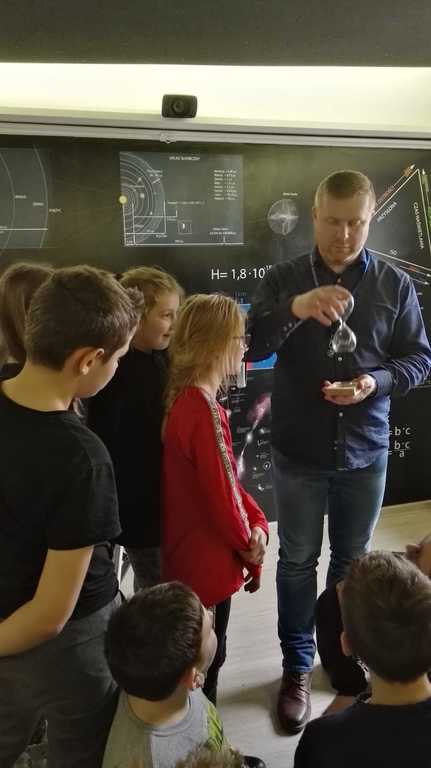 9 stycznia 2020r. uczniowie klas IV-VI wraz ze swoimi wychowawcami wybrali się w podróż po niezwykle fascynującym świecie Kosmosu. Wszystko to za sprawą wyjazdu do Obserwatorium Astronomicznego AstroLab w Czernicy. W przyjaznej, miłej atmosferze uczniowie brali udział w opowieści o Kosmosie - seans filmowy ukazujący oszałamiający świat Kosmosu, począwszy od naszej planety Ziemi - wyjątkowego miejsca tętniącego życiem, po najdalsze i najbardziej tajemnicze zakątki Wszechświata. Następnie odbyła się krótka lekcja techniczna nt. sił działających we Wszechświecie z wykorzystaniem astronomicznych pomocy dydaktycznych. Kolejnym punktem wycieczki była próba odpowiedzi na pytanie: Jak działa teleskop? – uczniowie zapoznali się z budową i działaniem teleskopu astronomicznego, wspólnie przygotowując jeden z nich do pracy. Na zakończenie zajęć zachwycaliśmy się wizualizacją gwiazdozbiorów widocznych nad Polską w planetarium wykonanym w technologii światłowodowej oraz otrzymaliśmy zaproszenie do udziału w kolejnym spotkaniu w symulatorze lotów kosmicznych.