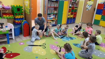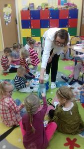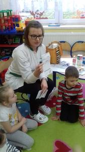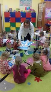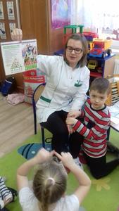31 stycznia 2020r. odbyły się w przedszkolu zajęcia promujące zdrowy styl życia. Najpierw pani Dominika Czogała pracująca w aptece zapoznała dzieci z jej przeznaczeniem, opowiedziała o swojej pracy, pokazała recepty, postacie leków i utensylia apteczne. Pani Dominika uczuliła na zapobieganie chorobom, na zdrowe odżywianie oraz zachęciła do aktywności fizycznej. Przedszkolaki ochoczo uczestniczyły w wykonaniu kremu z witaminą A. Po czym mogły posmarować nią ręce. Na koniec otrzymały od pani Dominiki m.in. witaminowe kolorowanki i plasterki, a odwdzięczyły się laurkami. Po tej części teoretycznej nastąpiły ćwiczenia ruchowe prowadzone przez pana Krzysztofa Drzeńka, tatę naszego przedszkolaka. Dzieci bardzo chętnie i radośnie w nich uczestniczyły. Ćwiczenia były dostosowane do możliwości przedszkolaków. Na koniec dzieci pochwaliły się swoimi zdolnościami oraz zaśpiewały piosenkę promującą życie w zdrowym środowisku (bez dymu tytoniowego). Dziękujemy pani Dominice i panu Krzysztofowi za przekazanie dzieciom wzorców zdrowego stylu życia.
