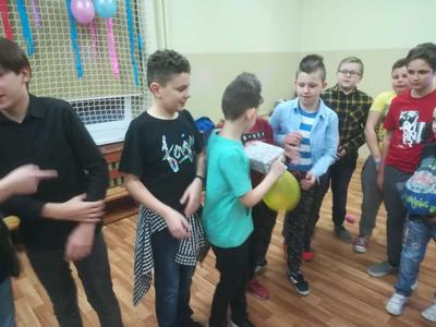 Z okazji dnia św. Walentego w naszej szkole zorganizowana została dyskoteka dla uczniów klas IV-VI. O godzinie 16:30 rozpoczęliśmy taneczną zabawę przy dźwiękach muzyki. Uczestnikom najbardziej spodobały się znane wszystkim z "tanecznych przerw" utwory. Hitem była oczywiście "Belgijka". Samorząd Uczniowski przygotował wiele gier i zabaw, podczas których wszyscy chętni świetnie się bawili. Niespodzianką dla uczniów był poczęstunek sfinansowany przez Komitet Rodzicielski. Zapach pysznej pizzy unosił się długo w całej szkole.