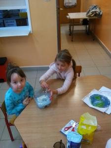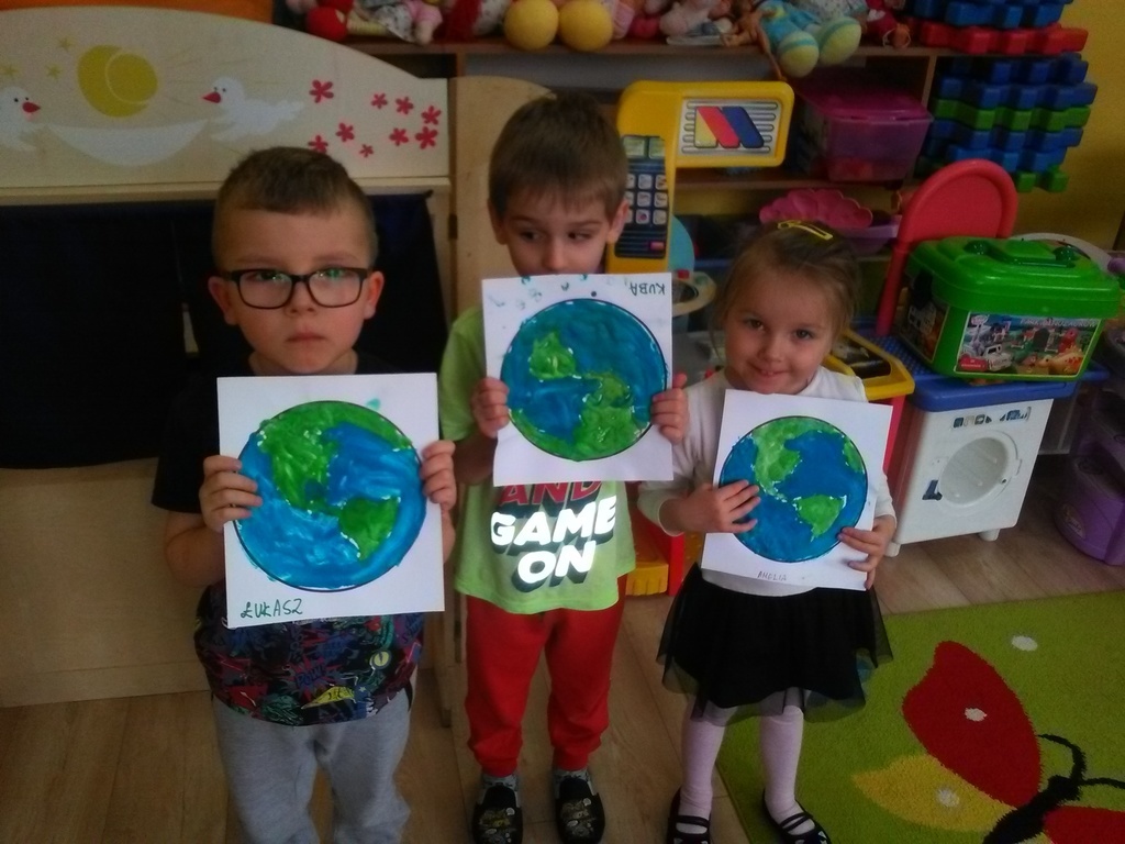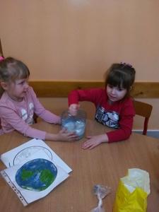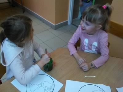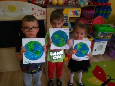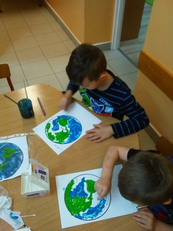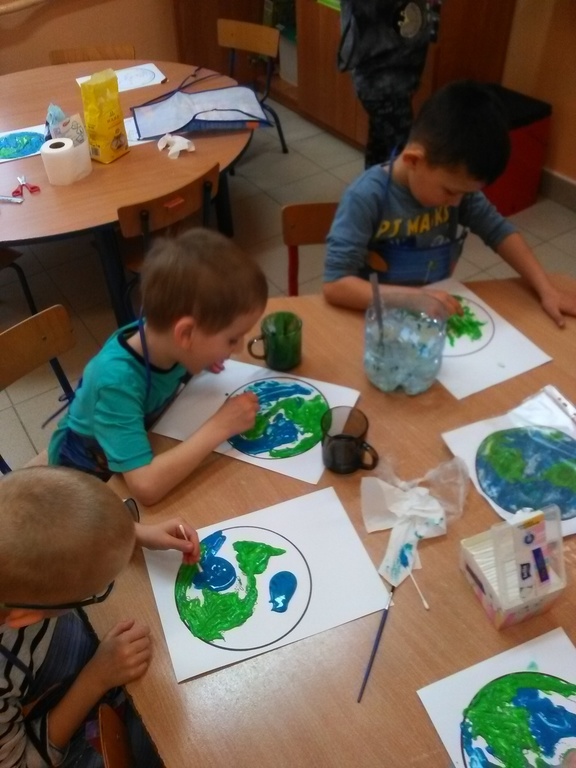W minionym tygodniu nasze przedszkolaki „udały się w podróż” po układzie słonecznym. Nauczyły się między innymi wierszyka o planecie Ziemi, poznały planety krążące wokół słońca, a na zakończenie tygodnia stworzyły małe arcydzieła plastyczne przedstawiające naszą planetę tak, jak widzą ją kosmonauci przebywający poza naszym globem. Prace zostały wykonane „rosnącymi farbami”. Przygotowaliśmy je samodzielnie podczas zajęć, ze składników, które znajdziemy w każdej kuchni. Zdecydowanie najatrakcyjniejszym momentem było barwienie „farb” barwnikami. Po wykonaniu pracy przyszedł czas na kolejny fascynujący dla dzieci moment – „pieczenie” naszych dzieł w mikrofalówce. Ostateczny efekt pracy naszych artystów można podziwiać na szkolnym korytarzu, gdzie zorganizowaliśmy „małą wystawę wielkich dzieł”. Zachęcamy do oglądania!