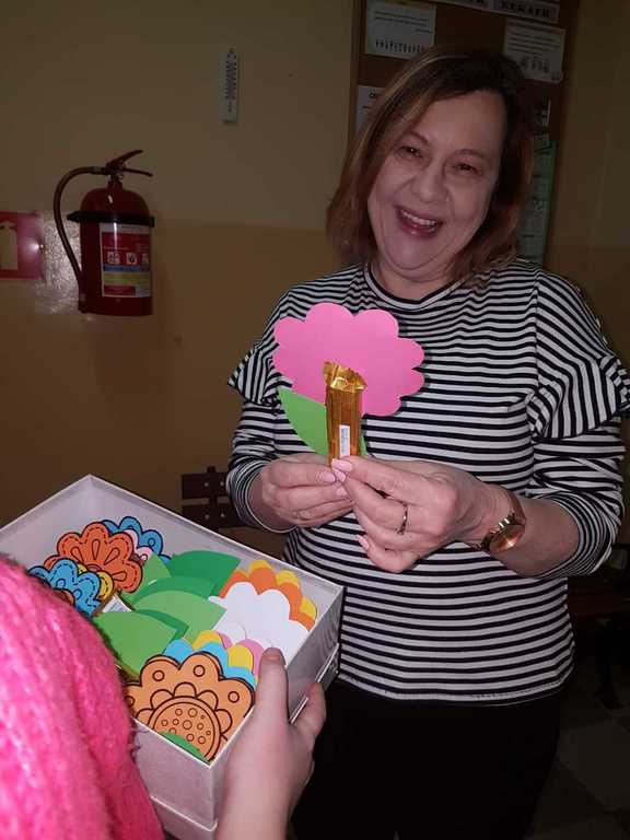 Wszystkiego najlepszego, zdrowia, radości, pogody ducha oraz uśmiechu... i wiele jeszcze innych słów popłynęło w tym dniu w stronę wszystkich Pań i dziewcząt z poszczególnych klas w naszej szkole. Również SK PCK uczciło ten dzień. Uczniowie koła, oprócz życzeń, wręczyli Paniom własnoręcznie wykonane kwiatki - ,,słodkie laurki". Całemu wydarzeniu towarzyszyła miła i sympatyczna atmosfera, a radosny uśmiech zagościł na twarzach obdarowywanych.