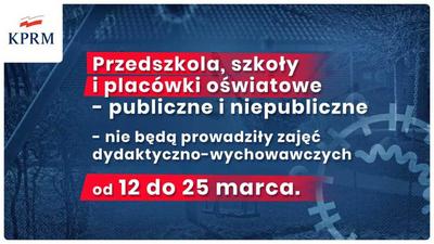 • ze względu na bezpieczeństwo zdrowotne Twoje i Twojego dziecka, zajęcia zostaną zawieszone od 12 marca br. W przedszkolach i szkołach podstawowych 12 i 13 marca br. będą jeszcze prowadzone działania opiekuńcze;