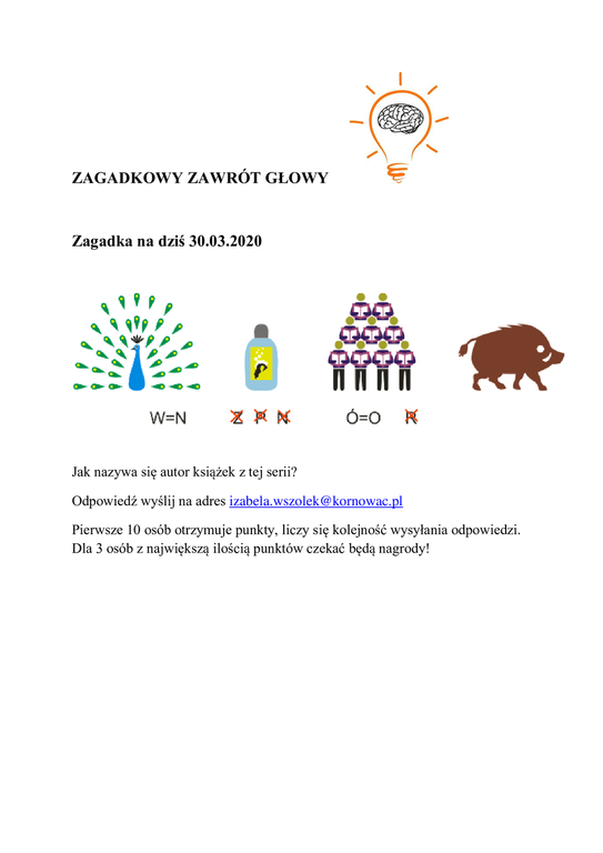 Zagadkowy zawrót głowy! Galeria zdjęć Powiązane wiadomości Kalendarium - 27 marca Akcja GÓRA GROSZA zakończona… Kalendarium - 30 marca Zagadkowy zawrót głowy! Zagadkowy zawrót głowy i kalendarium na 31 marca Zagadkowy zawrót głowy! Drukuj Udostępnij Data dodania: 30.03.2020 Wyświetlono: 403 Aktualności