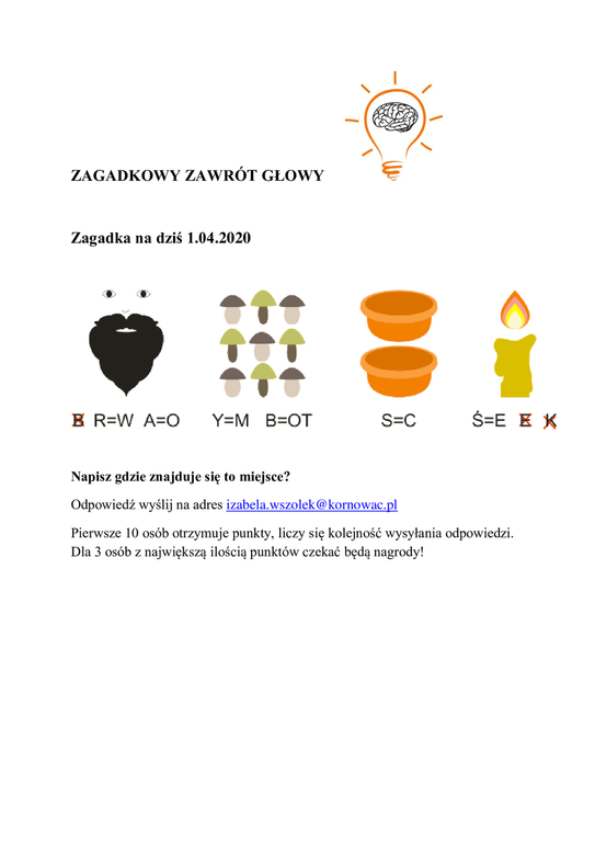 Zagadkowy zawrót głowy! Galeria zdjęć Powiązane wiadomości Kalendarium - 30 marca Zagadkowy zawrót głowy! Zagadkowy zawrót głowy i kalendarium na 31 marca Zagadkowy zawrót głowy! PRIMA APRILIS nie wierz bo się omylisz… 2 kwietnia – Międzynarodowy Dzień Książki dla... Drukuj Udostępnij Data dodania: 31.03.2020 Wyświetlono: 382 Aktualności