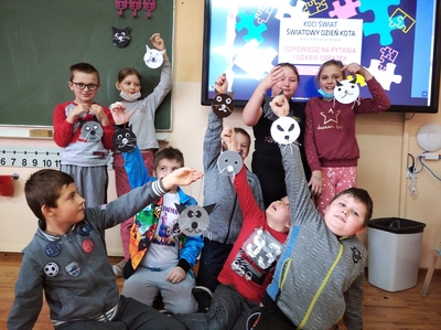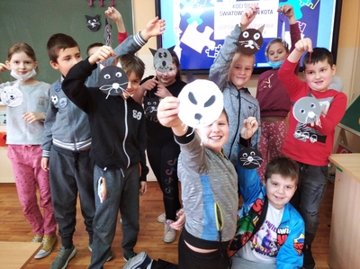 Postanowiliśmy w tym roku uczcić w naszej szkole Światowy Dzień Kota, uczniowie mieli sporo pomysłów na to, jak ma wyglądać ten dzień z kotem w roli głównej. Kot malowany, kot orgiami, maski kotów, przebrania, zdjęcia swoich pupili - to wszystko to, co działo się dziś w szkolnych murach. Był to dobry moment, aby dowiedzieć się czegoś o tych ciekawych zwierzętach - dzieci oglądały filmy o kotach, czytały informacje, rozwiązywały quizy. Uczniowie poznali rasy kotów, a także całą rodzinę kotowatych od ocelota, pumę, rysia, aż po karakala, irbisa i lwa. Dzień Kota był wspaniałą okazją do nauki i zabawy.