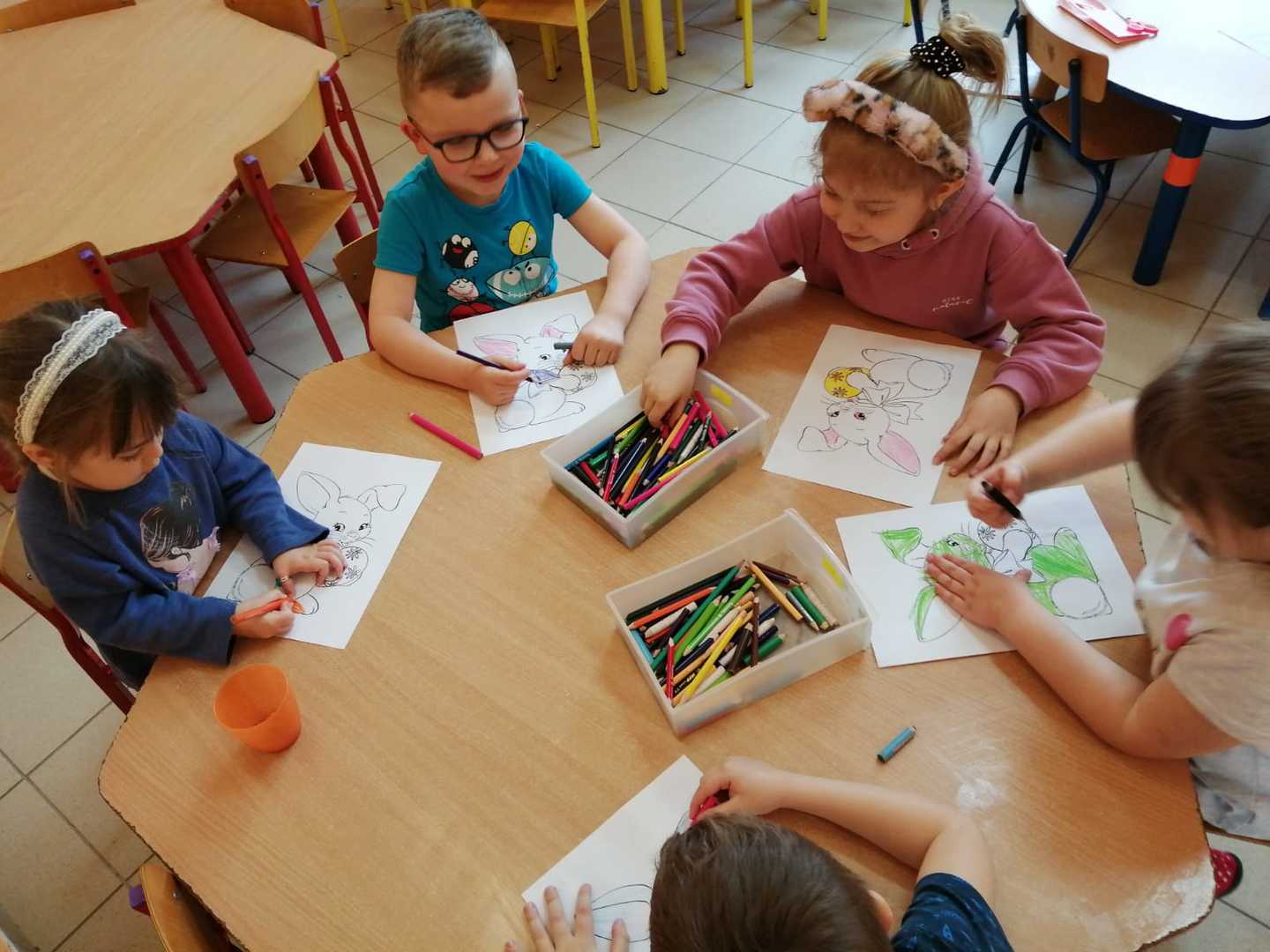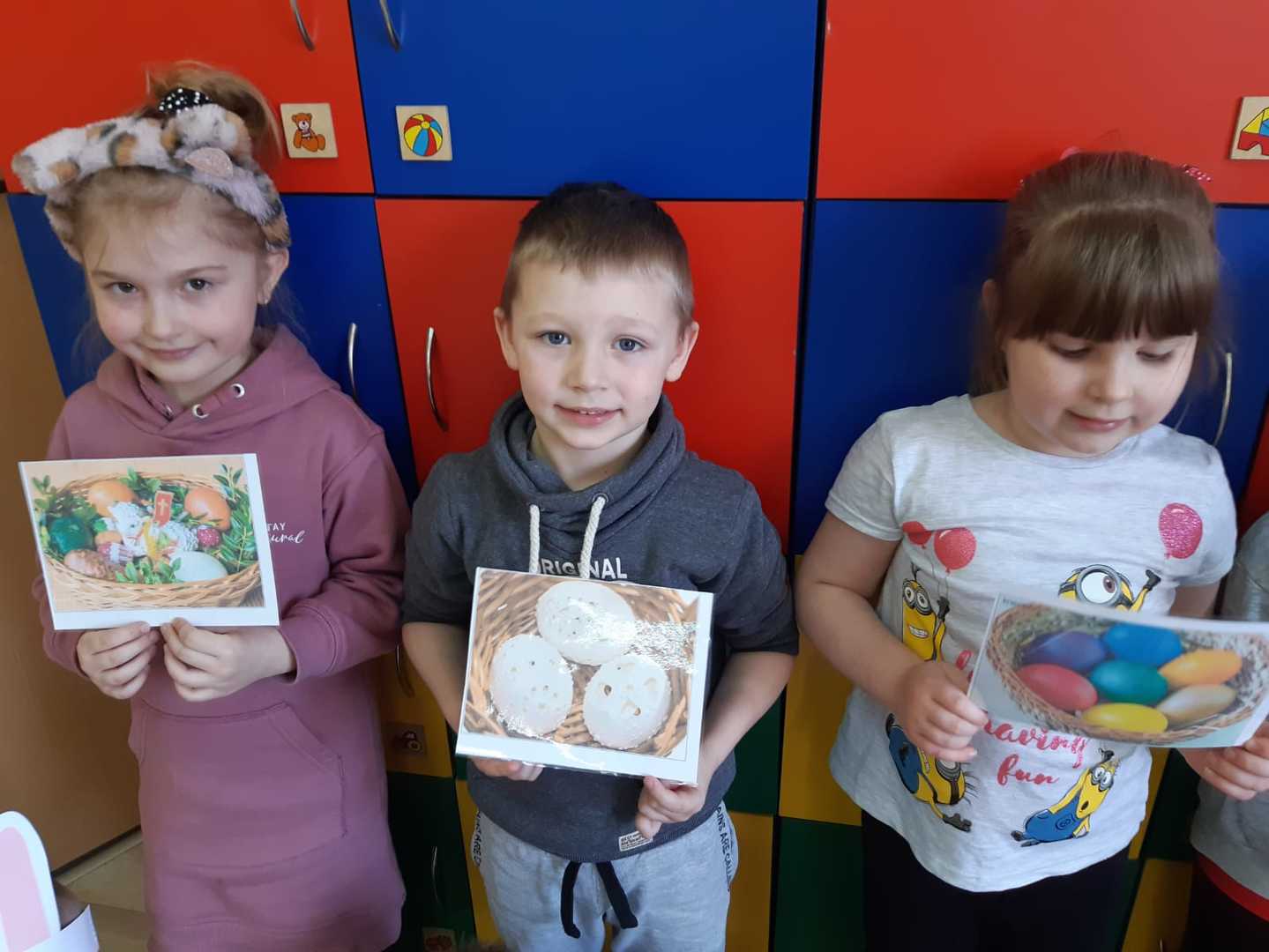 Wielkanoc to połączenie tradycji chrześcijańskich i radości z nadchodzącej wielkimi krokami wiosny. Wiele zwyczajów związanych jest z symboliką nowego życia i budzącą się z zimowego snu przyrody. W naszym przedszkolu zaczęliśmy obchody tych świąt już w piątek 26 marca. Rozmawialiśmy z dziećmi o obrzędach wielkanocnych, przedszkolaki bardzo chętnie dzieliły się swoimi spostrzeżeniami na temat swoich rodzinnych tradycji. Wspólnie omawialiśmy symbole świąt wielkanocnych oraz znaczenie święconych pokarmów takich jak kiełbasa, chleb, jajka, sól czy chrzan. Przedszkolaki dowiedziały się jak w naturalny sposób można zafarbować skorupkę jajka, aby powstały piękne kraszanki. Niestety ze względu na panującą sytuację epidemiologiczną oraz przejście na naukę zdalną nasze kochane dzieci kontynuują naukę o Świętach Wielkanocnych w domu a z nadesłanych przez ich rodziców prac widzimy, że radzą sobie świetnie! Bardzo dziękujemy za wszystkie przesłane wiadomości. Jednocześnie chciałyśmy złożyć Państwu i naszym dzieciom serdeczne życzenia wielkanocne: