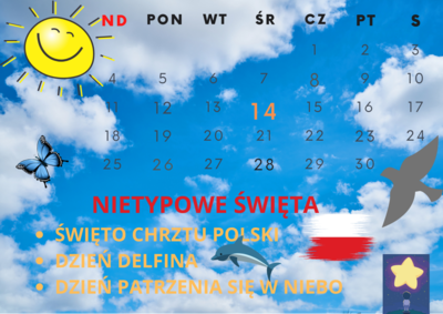 Kartka z kalendarza - 14.04.2021 Galeria zdjęć Załączniki _sroda_14042021.mp4 [8.27 MB] Powiązane wiadomości Wyprawa w kosmos- zdalne nauczanie w przedszkolu Kartka z kalendarza - 12.04.2021 Święto Chrztu Polski 14.04.2021 Kartka z kalendarza - 14.04.2021 18 kwiecień Międzynarodowym Dniem Ochrony Zabytków... Kartka z kalendarza - 19.04.2021 Drukuj Udostępnij Data dodania: 14.04.2021 Wyświetlono: 269 Aktualności