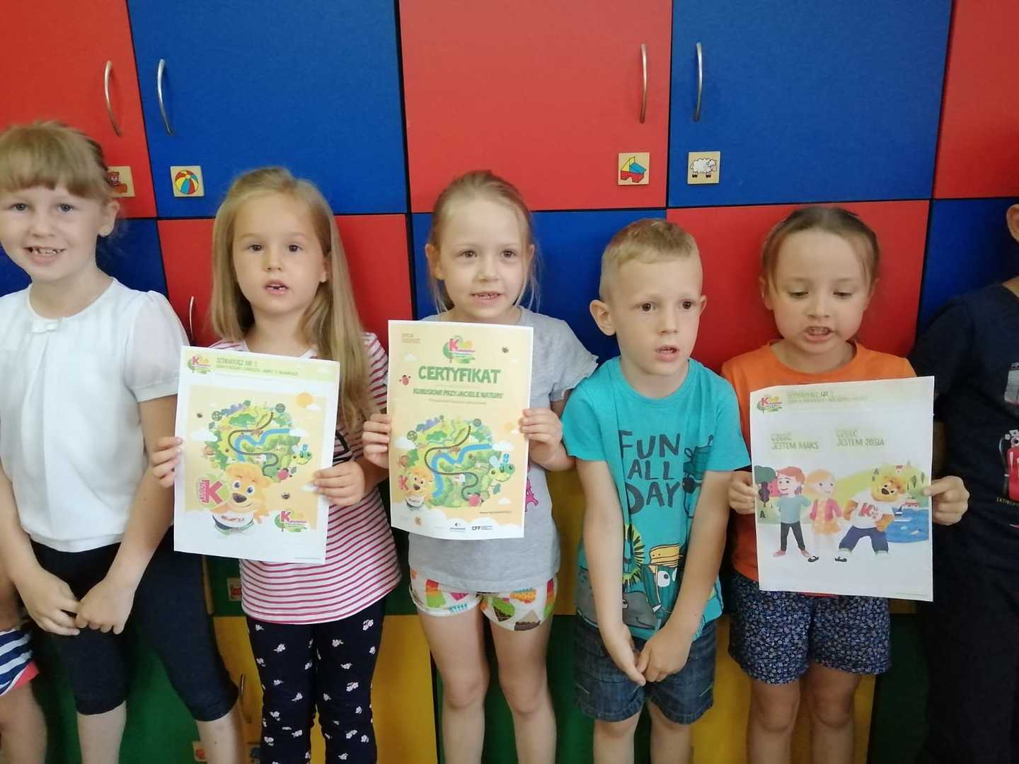 Podczas zajęć dzieci uczyły się troszczyć o środowisko naturalne, poznały podstawowe zasady ekologii, dowiedziały się, dlaczego warto jeść owoce i warzywa oraz poznały korzyści płynące z ruchu. Miło nam poinformować, że po zrealizowaniu scenariuszy lekcyjnych nasze przedszkole otrzymało specjalny certyfikat przyznającym tytuł: „Kubusiowych Przyjaciół Natury”. Zachęcamy także rodziców do zapoznania się z materiałami umieszczonymi na stronie www.przyjacielenatury.pl