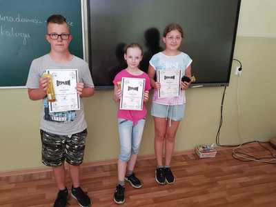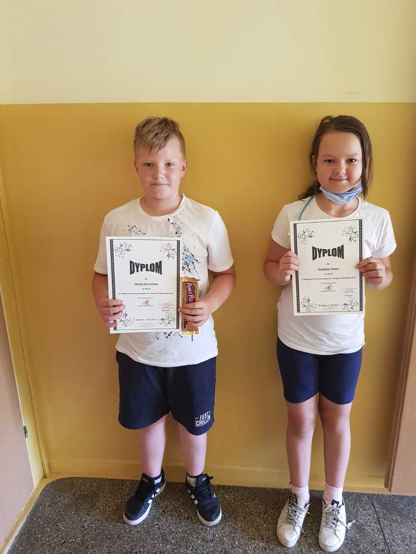 Ewelina Kłobuch z klasy szóstej zajęła pierwsze miejsce w powiecie oraz Julia Ficek z klasy piątej trzecie miejsce.