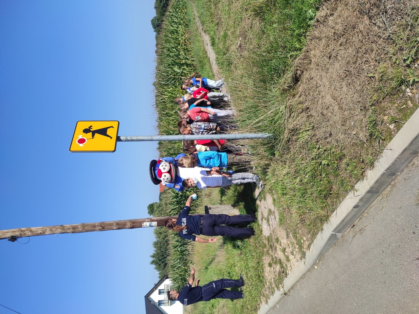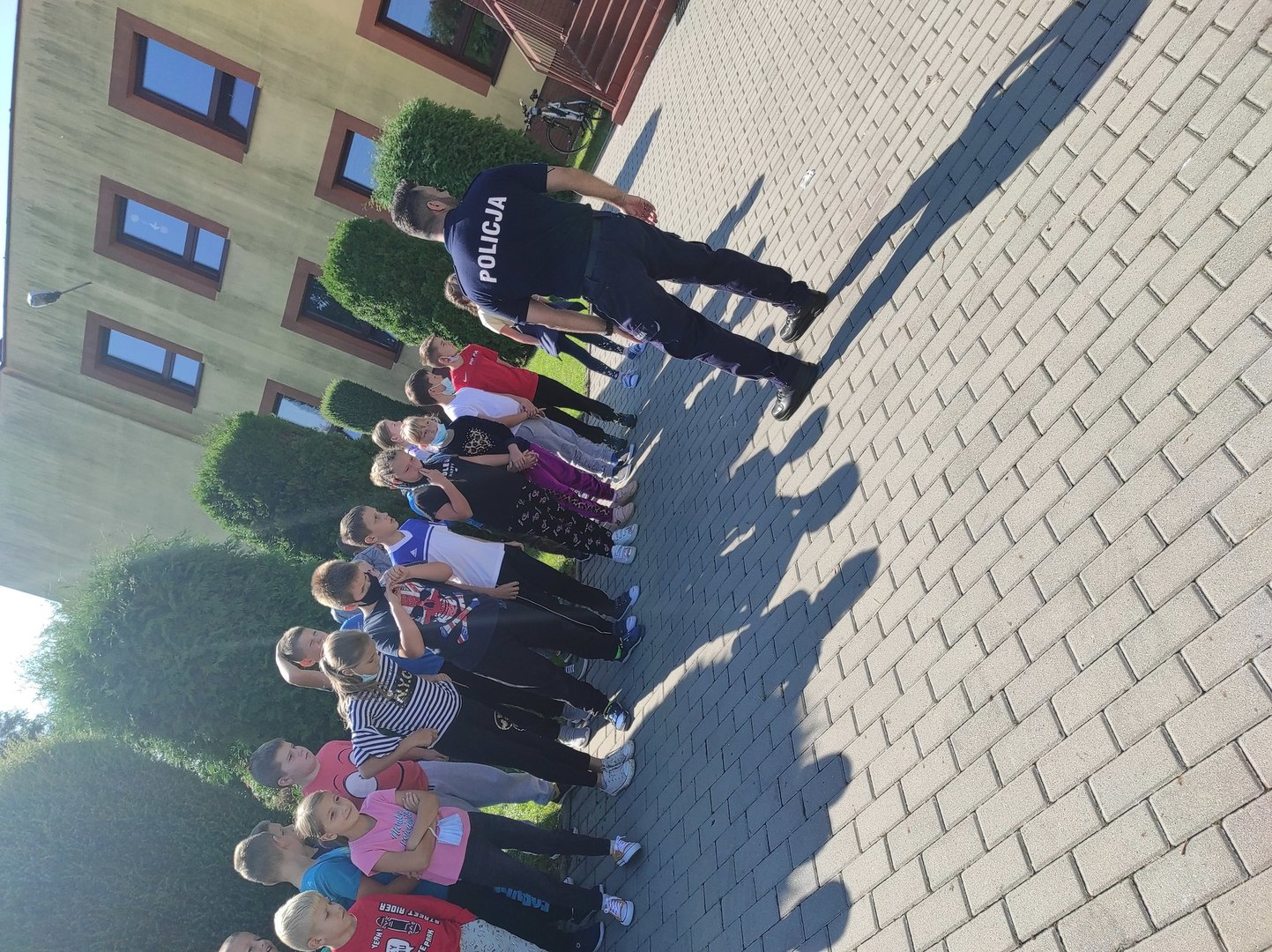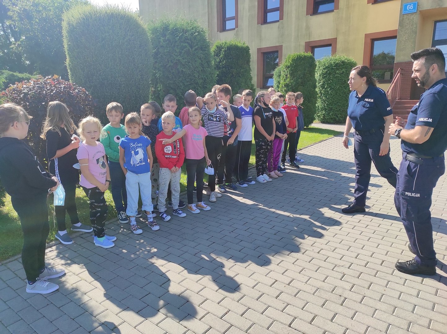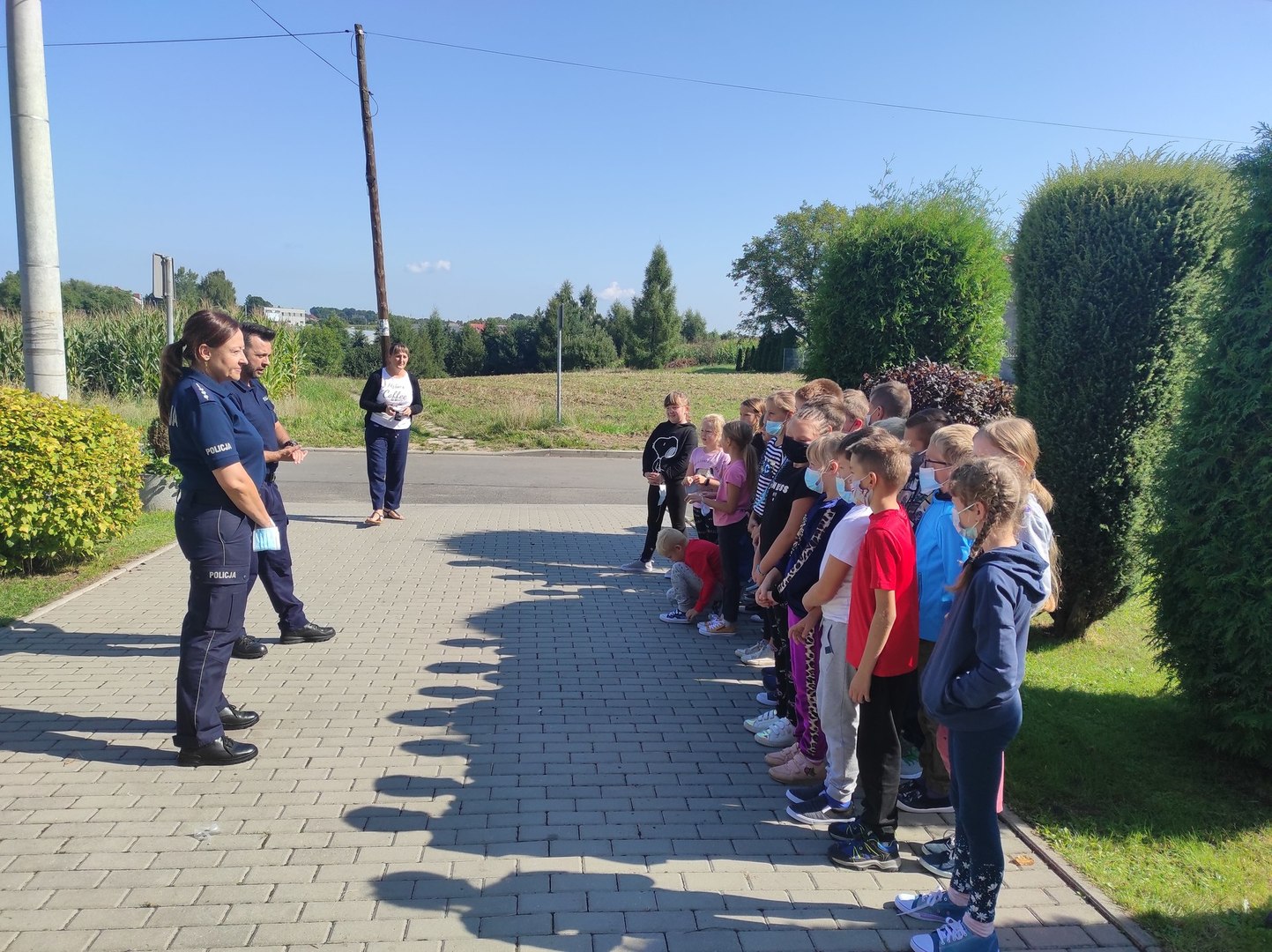 W naszej szkole duży nacisk kładziemy na bezpieczeństwo oraz edukację związaną z bezpieczeństwem dzieci. Na początku każdego roku szkolnego dzieci klas najmłodszych poznają drogę do szkoły wraz ze znakami drogowymi i zasadami, które uczą jak należy zachowywać się w pobliżu ulic. W ramach edukacji w tym kierunku, dzieci z klasy II oraz III spotkały się z policjantem w celu przypomnienia najważniejszych zasad ruchu drogowego podczas przechodzenia przez jezdnię. Policjanci przypomnieli również o korzyściach noszenia elementów odblaskowych przy ubraniu bądź tornistrze. Dzieci czynnie uczestniczyły w spotkaniu, dzieliły się swoimi spostrzeżeniami i doświadczeniami oraz zadawały dużo pytań. Jednak największą atrakcją okazała się maskotka śląskiej policji – Sznupek, który wraz z dziećmi ćwiczył prawidłowe przechodzenie przez jezdnię na której nie ma pasów. Spotkanie z uczniami szkoły podstawowej było również doskonałą okazją do zaprezentowania zawodu policjanta. Zajęcia bardzo spodobały się dzieciom co zostało uwiecznione na pamiątkowym zdjęciu.