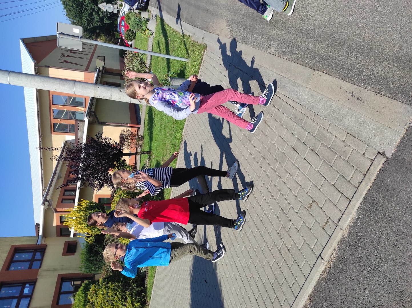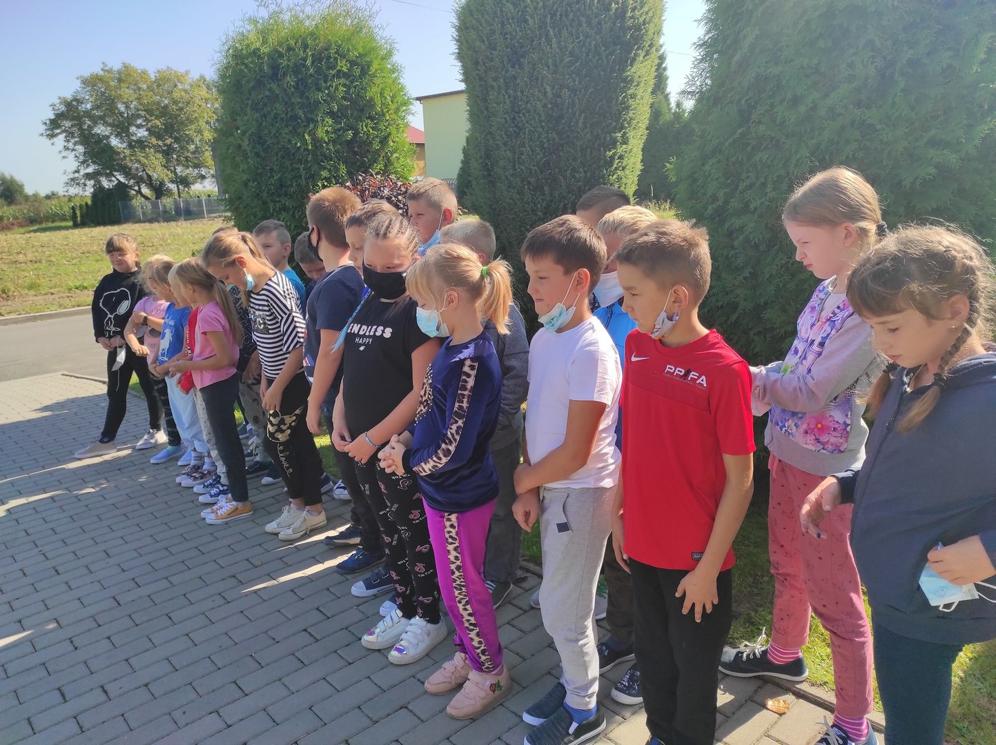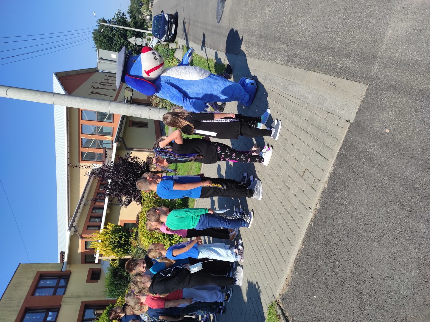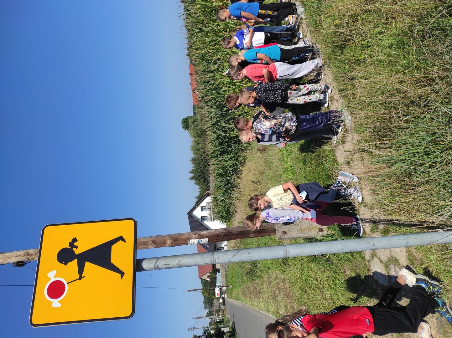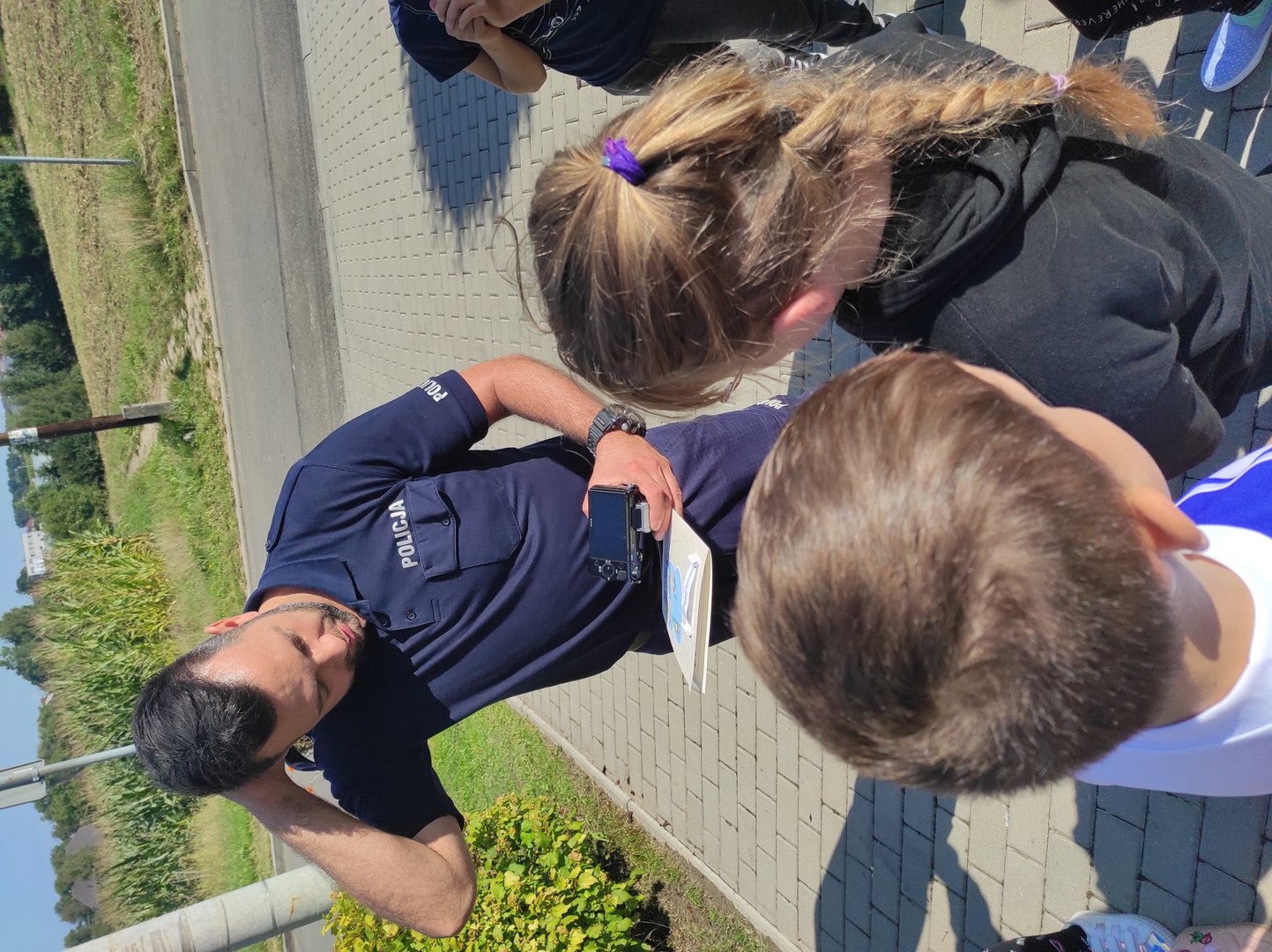 W naszej szkole duży nacisk kładziemy na bezpieczeństwo oraz edukację związaną z bezpieczeństwem dzieci. Na początku każdego roku szkolnego dzieci klas najmłodszych poznają drogę do szkoły wraz ze znakami drogowymi i zasadami, które uczą jak należy zachowywać się w pobliżu ulic. W ramach edukacji w tym kierunku, dzieci z klasy II oraz III spotkały się z policjantem w celu przypomnienia najważniejszych zasad ruchu drogowego podczas przechodzenia przez jezdnię. Policjanci przypomnieli również o korzyściach noszenia elementów odblaskowych przy ubraniu bądź tornistrze. Dzieci czynnie uczestniczyły w spotkaniu, dzieliły się swoimi spostrzeżeniami i doświadczeniami oraz zadawały dużo pytań. Jednak największą atrakcją okazała się maskotka śląskiej policji – Sznupek, który wraz z dziećmi ćwiczył prawidłowe przechodzenie przez jezdnię na której nie ma pasów. Spotkanie z uczniami szkoły podstawowej było również doskonałą okazją do zaprezentowania zawodu policjanta. Zajęcia bardzo spodobały się dzieciom co zostało uwiecznione na pamiątkowym zdjęciu.