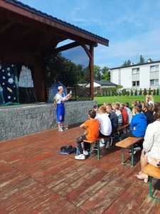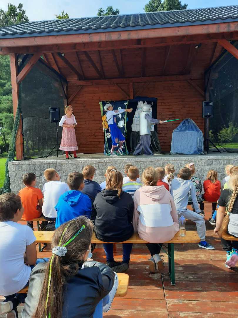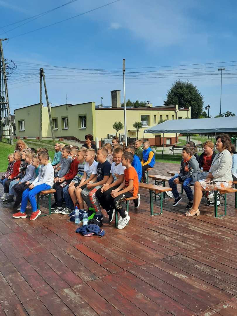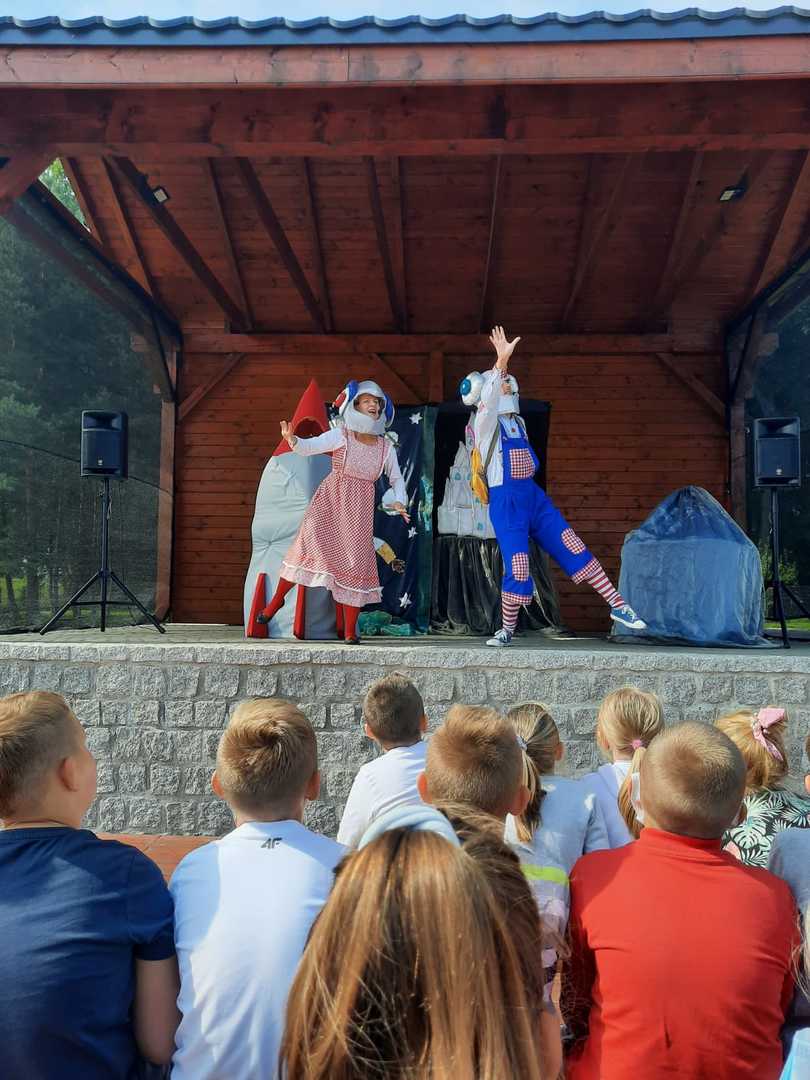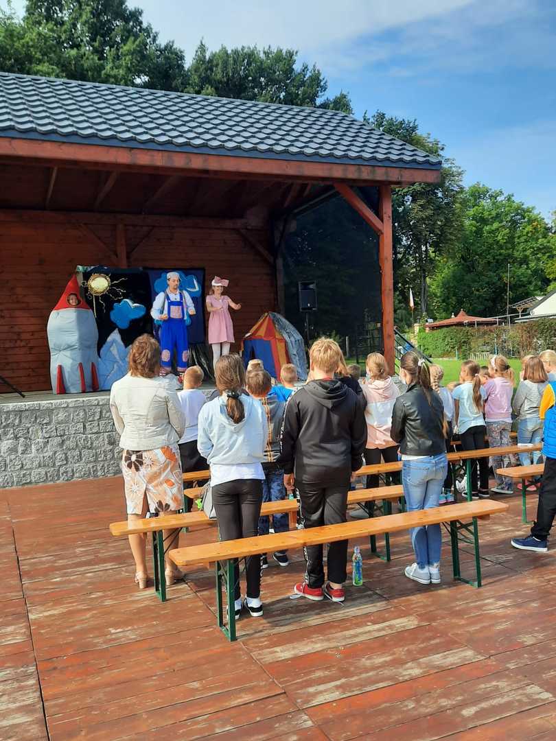 Dnia 7 września 2021 uczniowie naszej szkoły mieli okazję wziąć udział w przedstawieniu interaktywnym, którego organizatorem była Gminna Biblioteka Publiczna w Kornowacu. Występ o tytule "Babroszki lecą w kosmos" zyskało sympatię naszych uczniów. Trójka aktorów: Pchła, Kurkuma i Manolo, zabrała ich na wycieczkę w kosmos. Na miejscu czekały na nich nie lada przygody, m.in. deszcz asteroidów czy spotkanie z groźnym Hrabią Robotem. Przedstawienie przeplatane było tańcami i piosenkami, w których nasze klasy chętnie brały udział.
