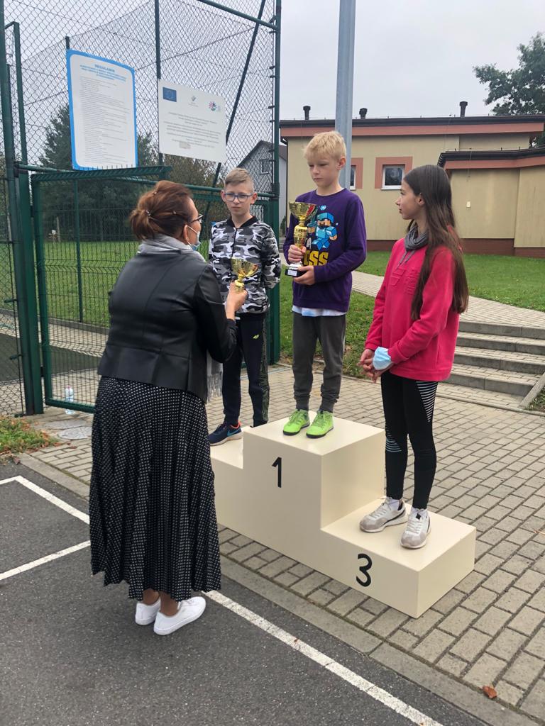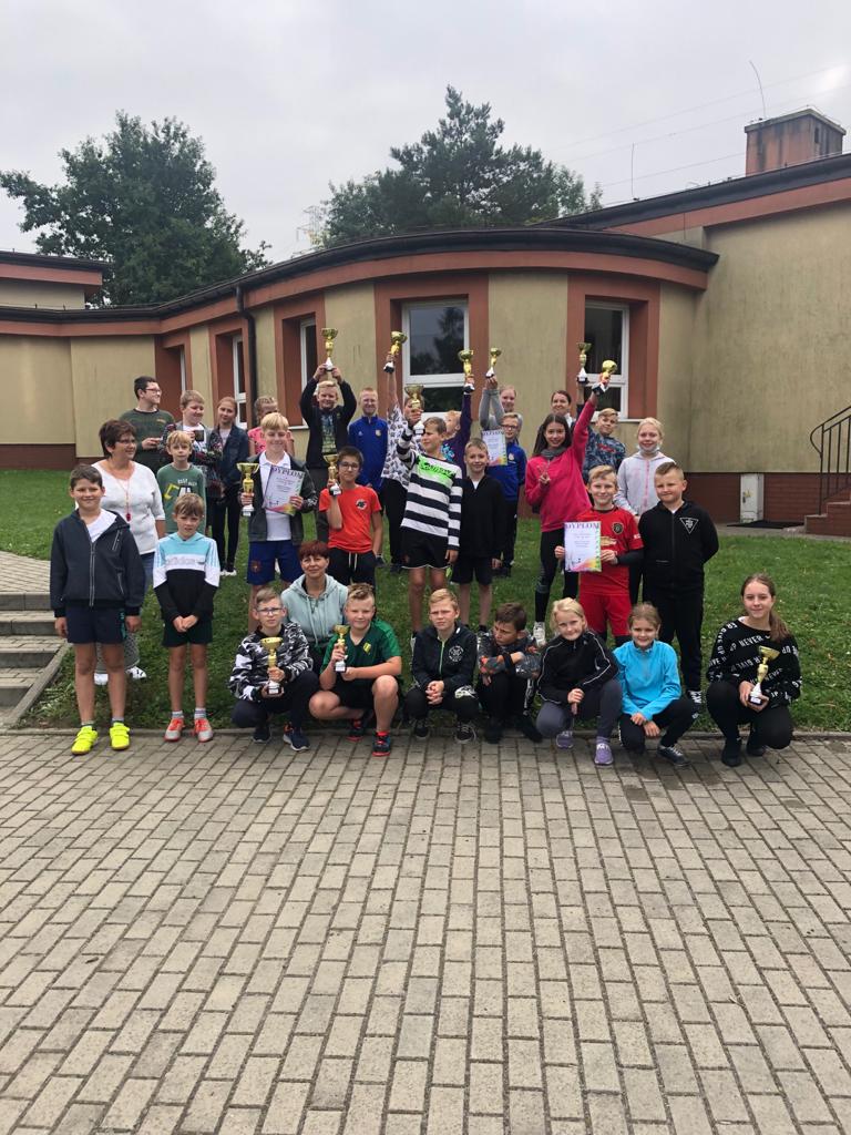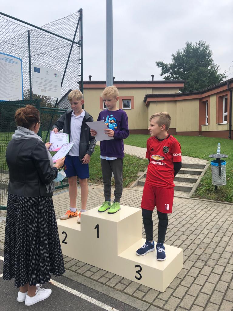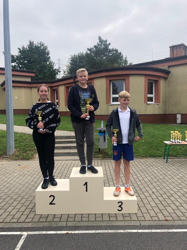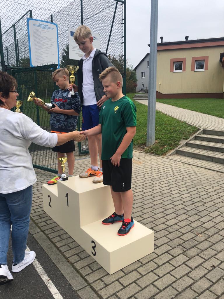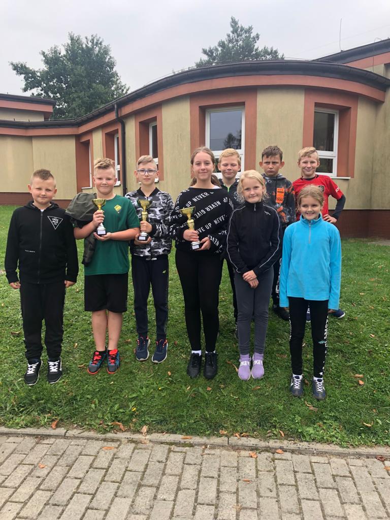 29.09.2021r. uczniowie reprezentujący Szkołę w Rzuchowie startowali w gminnych zawodach lekkoatletycznych, które odbyły się na boiskach szkolnych w Pogrzebieniu. Wśród czterech dyscyplin lekkoatletycznych znalazły się konkurencje w biegu na 40 m, skok w dal z miejsca, rzut piłeczką palantową oraz rzut piłką lekarską. Nasi zawodnicy składzie: Alicja Wojciechowska, Aleksandra Kowol, Żaneta Wilk, Dawid Kacorzyk, Aleksander Grela, Jakub Zarzycki, Wojciech Krzyżok, Paweł Chłapek, Wojciech Kampka drużynowo zajęli trzecie miejsce zmagając się ze szkołami z Pogrzebienia i Kobyli. W rzucie piłką lekarską II miejsce zajęła Ala Wojciechowska, w biegu na 40m II miejsce wywalczył Dawid Kacorzyk, a w rzucie piłeczką palantową na podium II miejsca znalazł się Jakub Zarzycki. Wszystkim zawodnikom gratulujemy sukcesów sportowych i zachęcamy do dalszego rozwijania pasji sportowych.