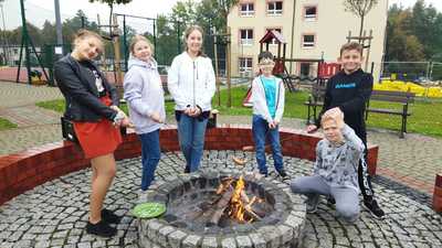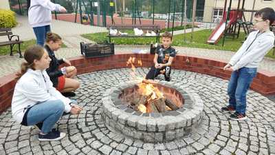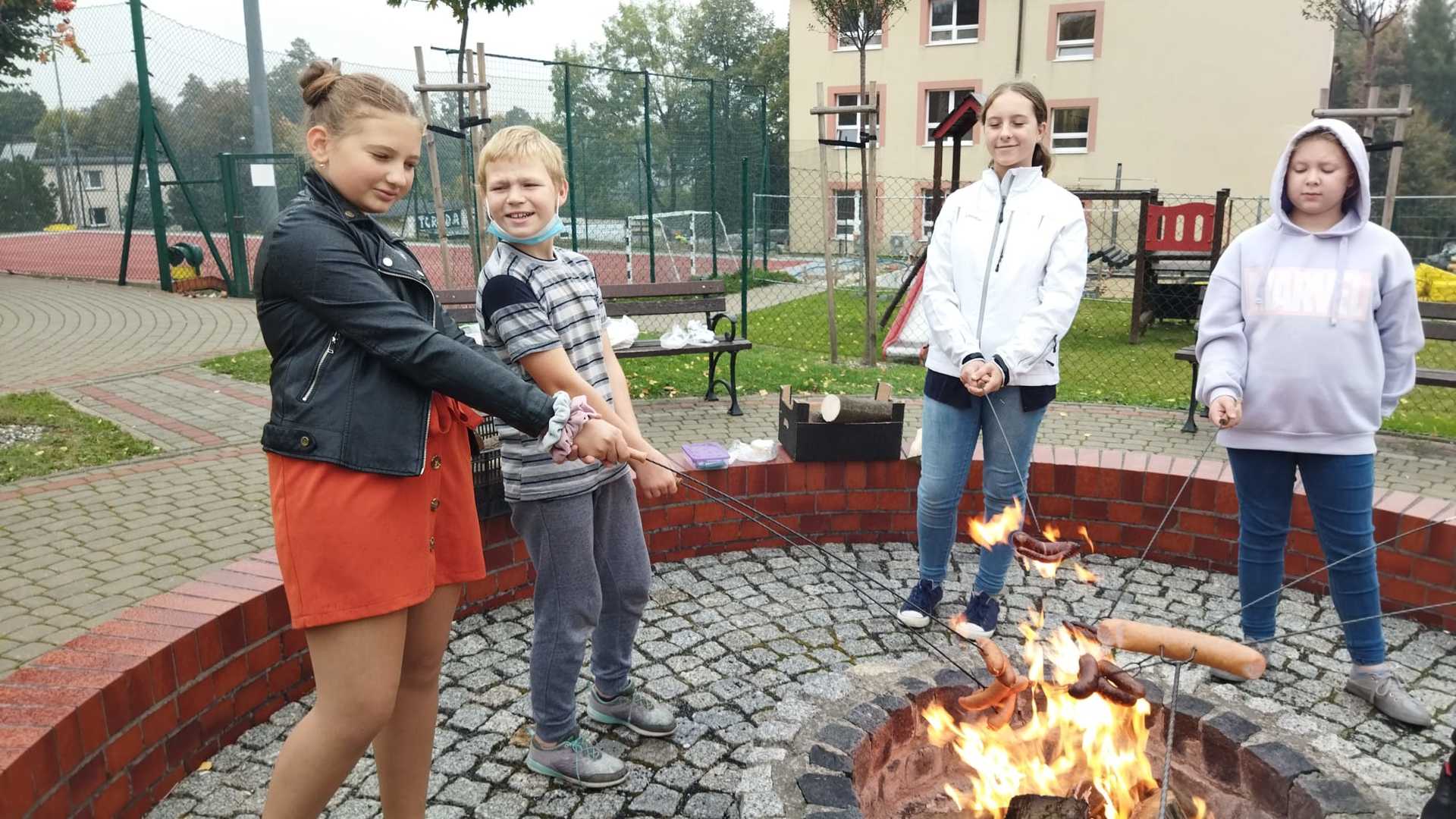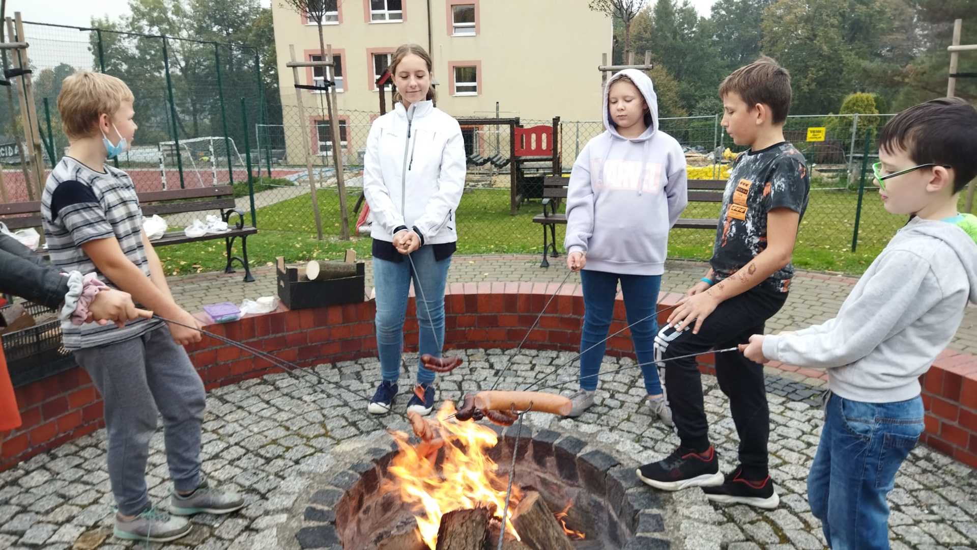 W środę szóstego października uczniowie klasy szóstej z wychowawcą zorganizowali klasowe ognisko. Wspólnie rozpalili ogień, następnie upiekli kiełbaski i chleb, by razem spożyć posiłek. Przygotowaniu pieczonych kiełbasek towarzyszyły serdeczne rozmowy i śmiech. Działania takie są wynikiem założeń szkolnego programu wychowawczego zakładającego ciągłe starania o integrację klas, budowanie pozytywnej atmosfery klasowej oraz poprawę relacji między uczniami.