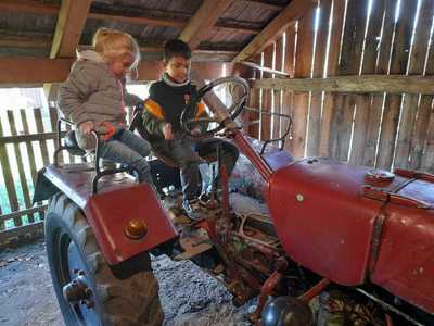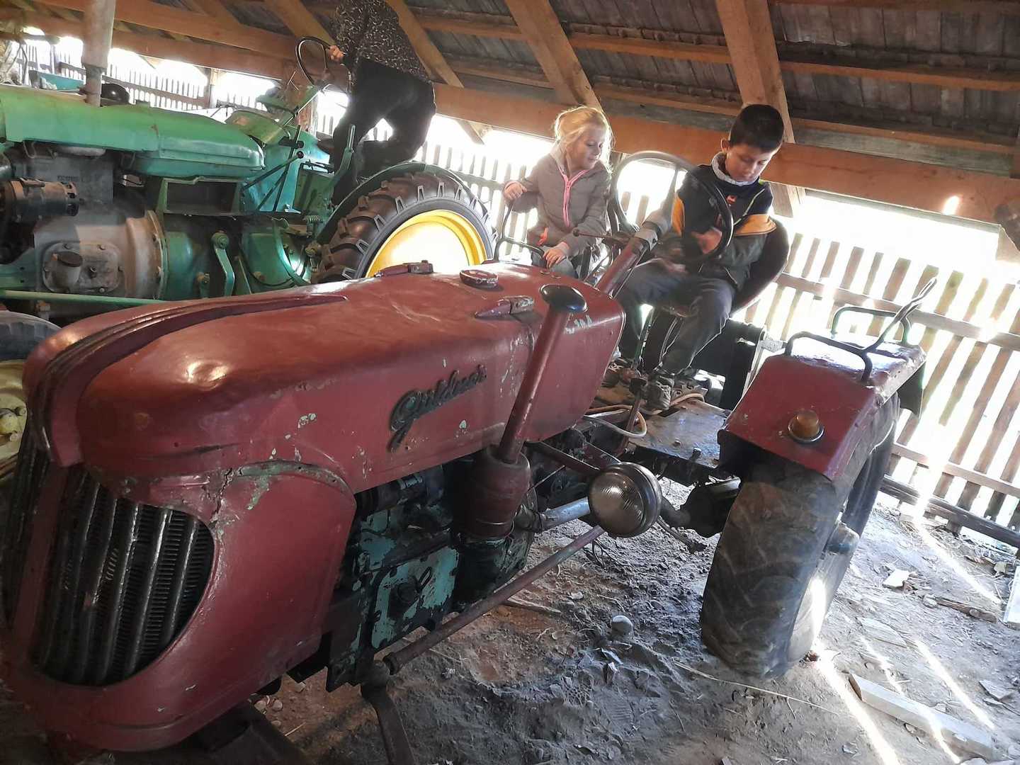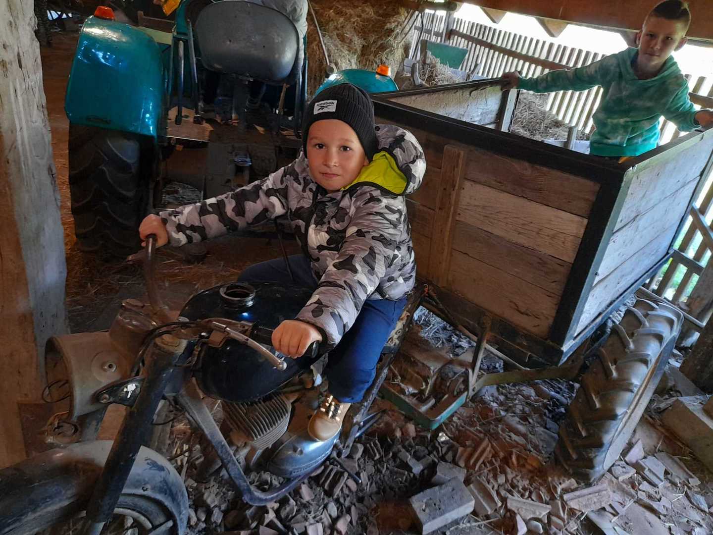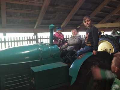 Dzieci samodzielnie mogły za pomocą cepa oddzielić ziarenka z kłosów, spróbowały zasiąść na traktorze.