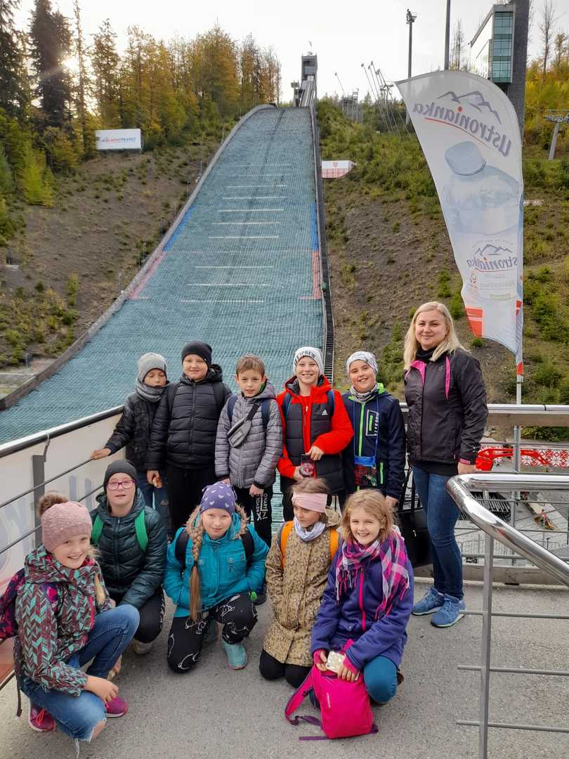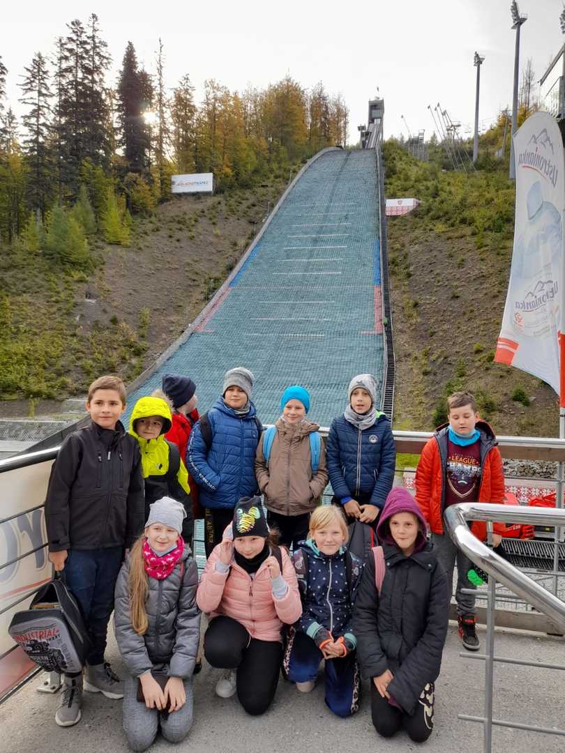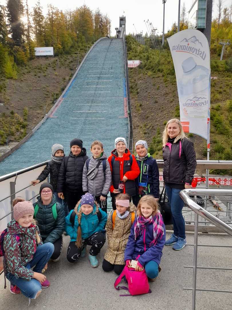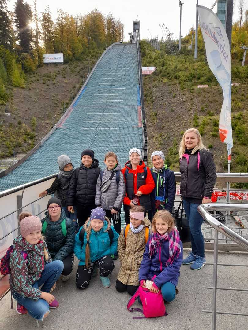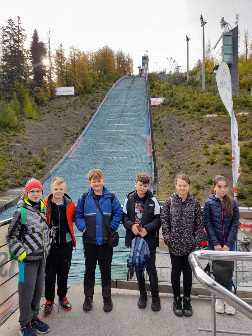 Pierwszym etapem było oglądanie zapory wodnej w Wiśle, poznaliśmy miejsce gdzie wypływa źródło rzeki Wisły. Byliśmy także gośćmi na dużej skoczni narciarskiej im. Adama Małysza, siedzieliśmy na widowni i podziwialiśmy cały obiekt.