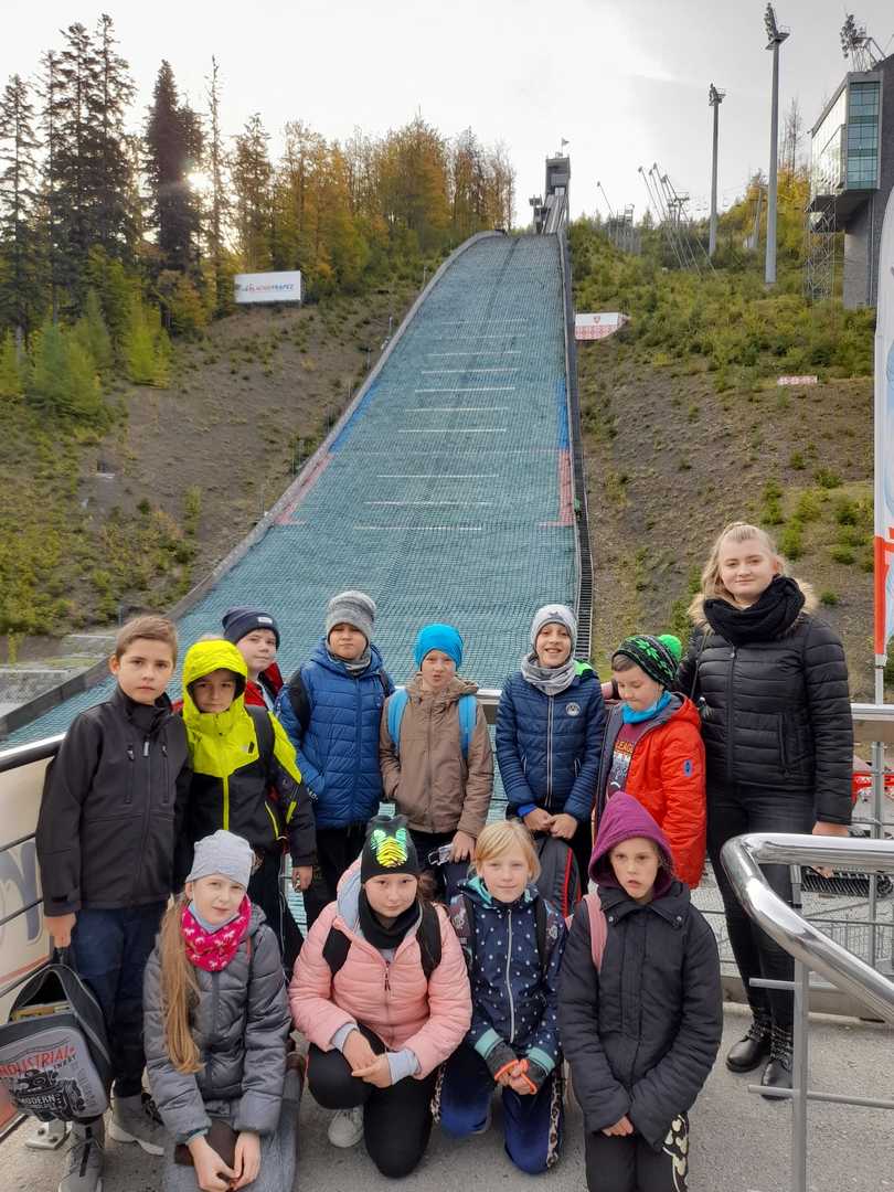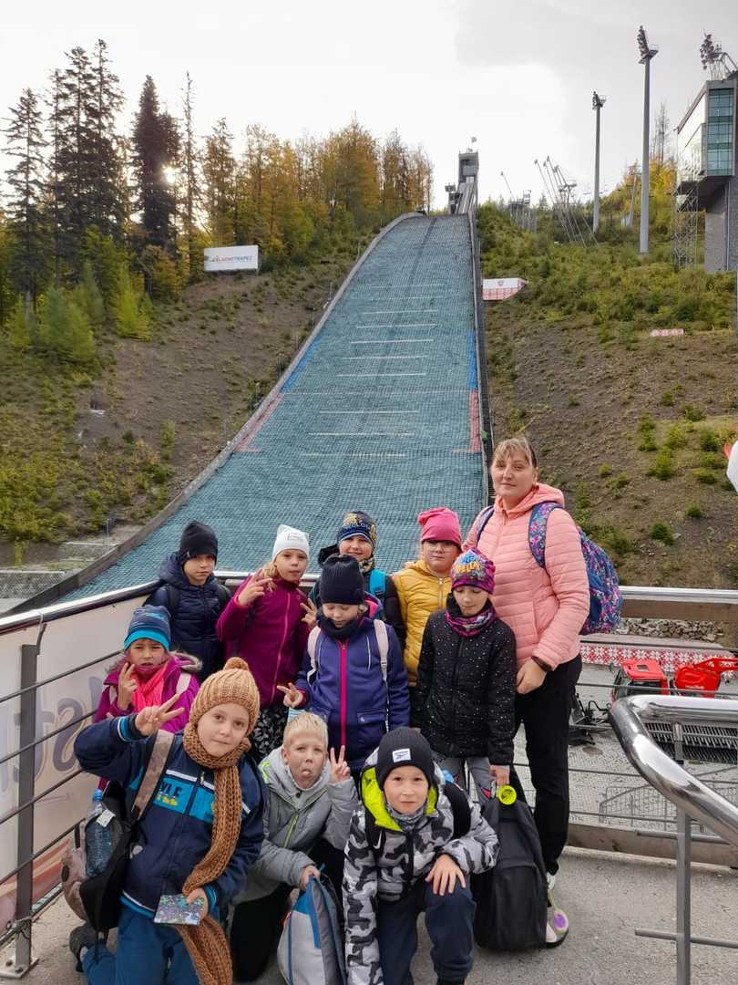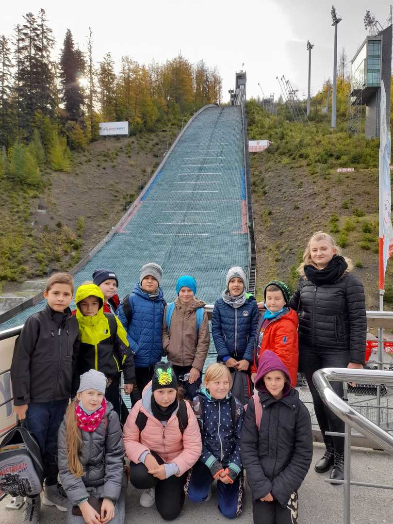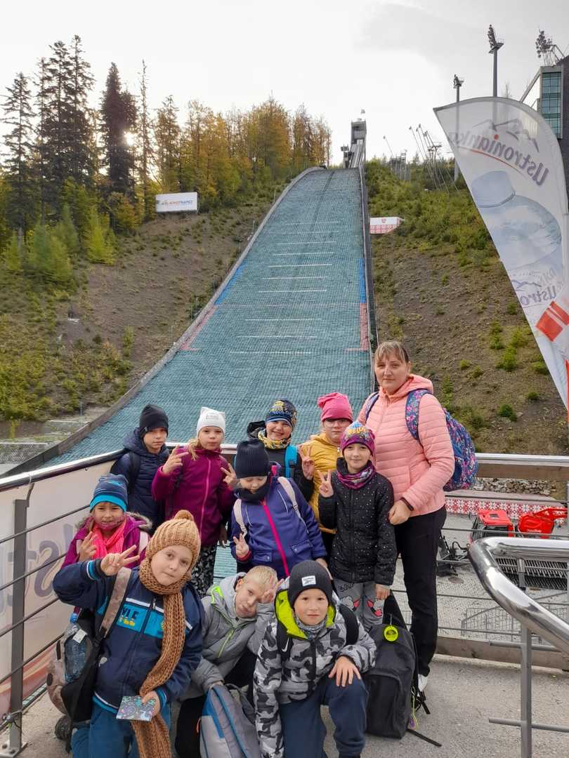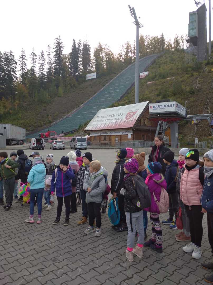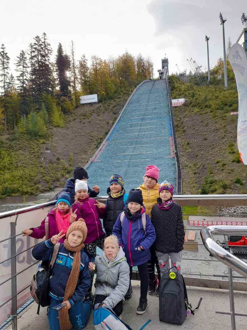 Pierwszym etapem było oglądanie zapory wodnej w Wiśle, poznaliśmy miejsce gdzie wypływa źródło rzeki Wisły. Byliśmy także gośćmi na dużej skoczni narciarskiej im. Adama Małysza, siedzieliśmy na widowni i podziwialiśmy cały obiekt.