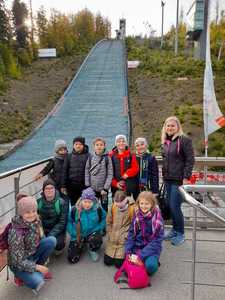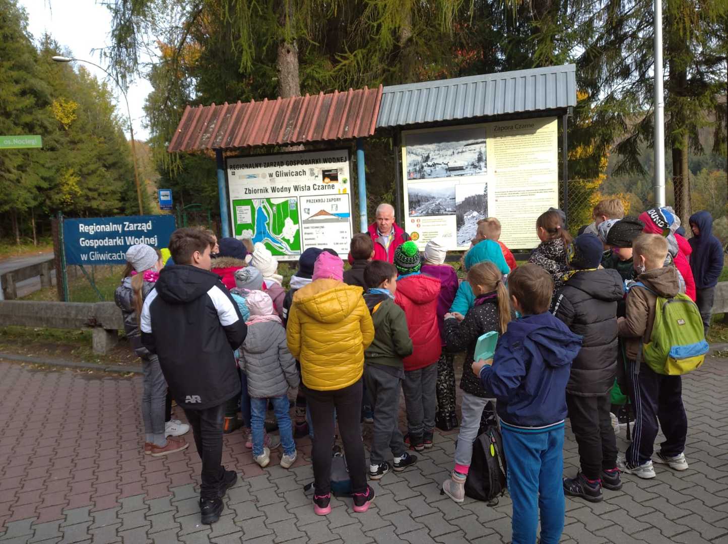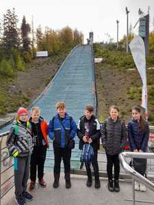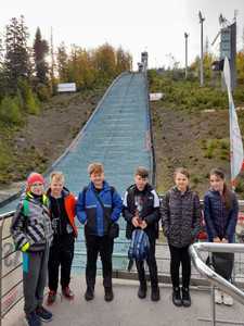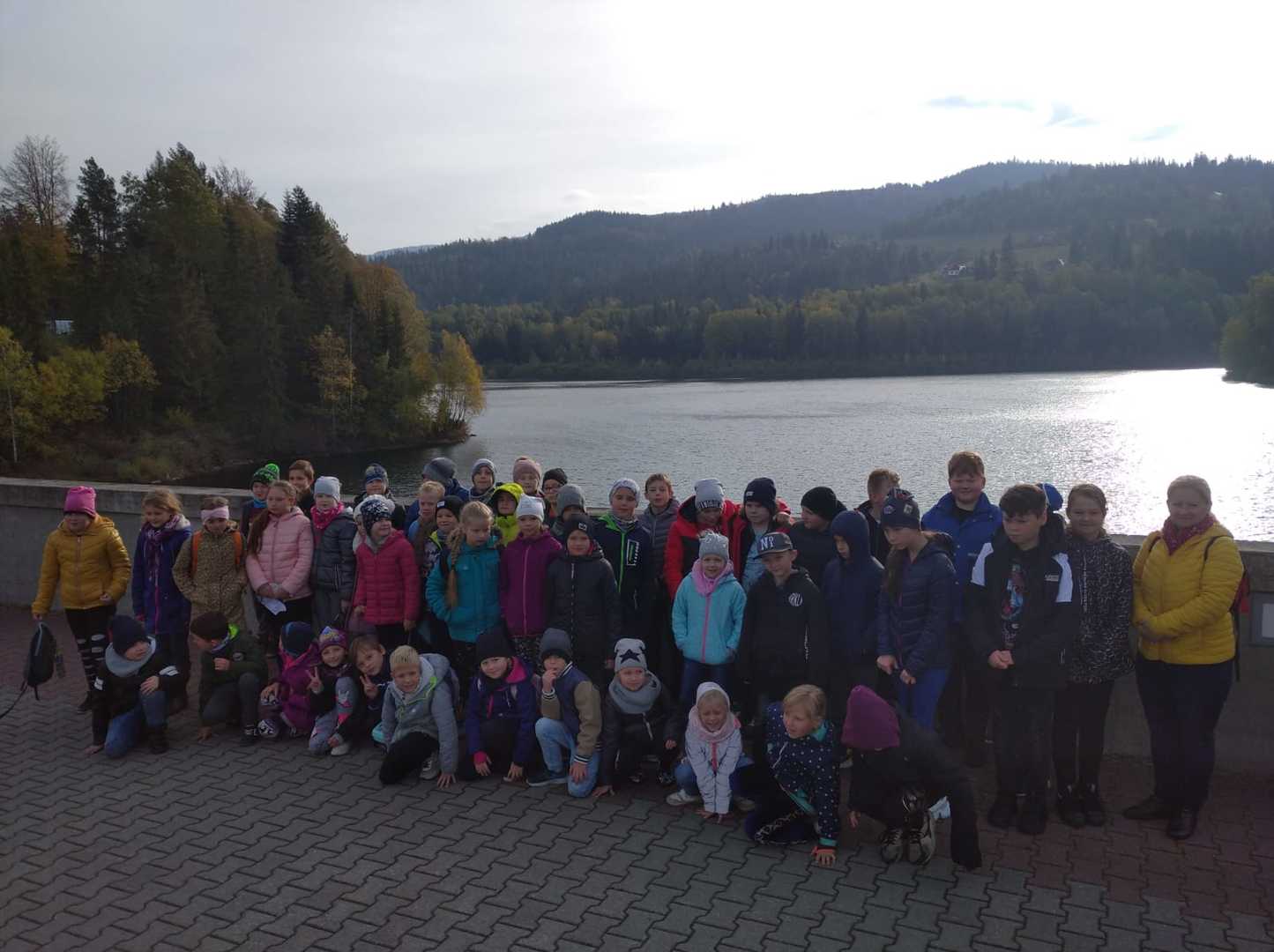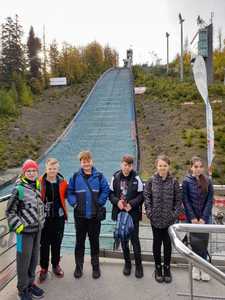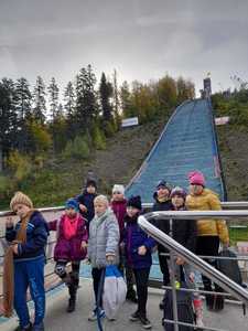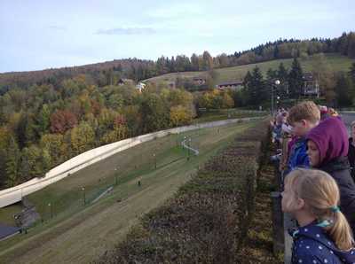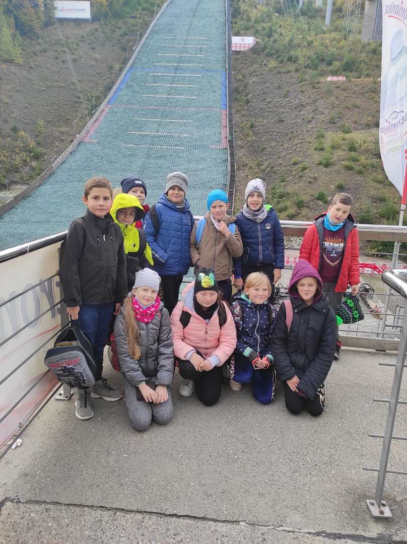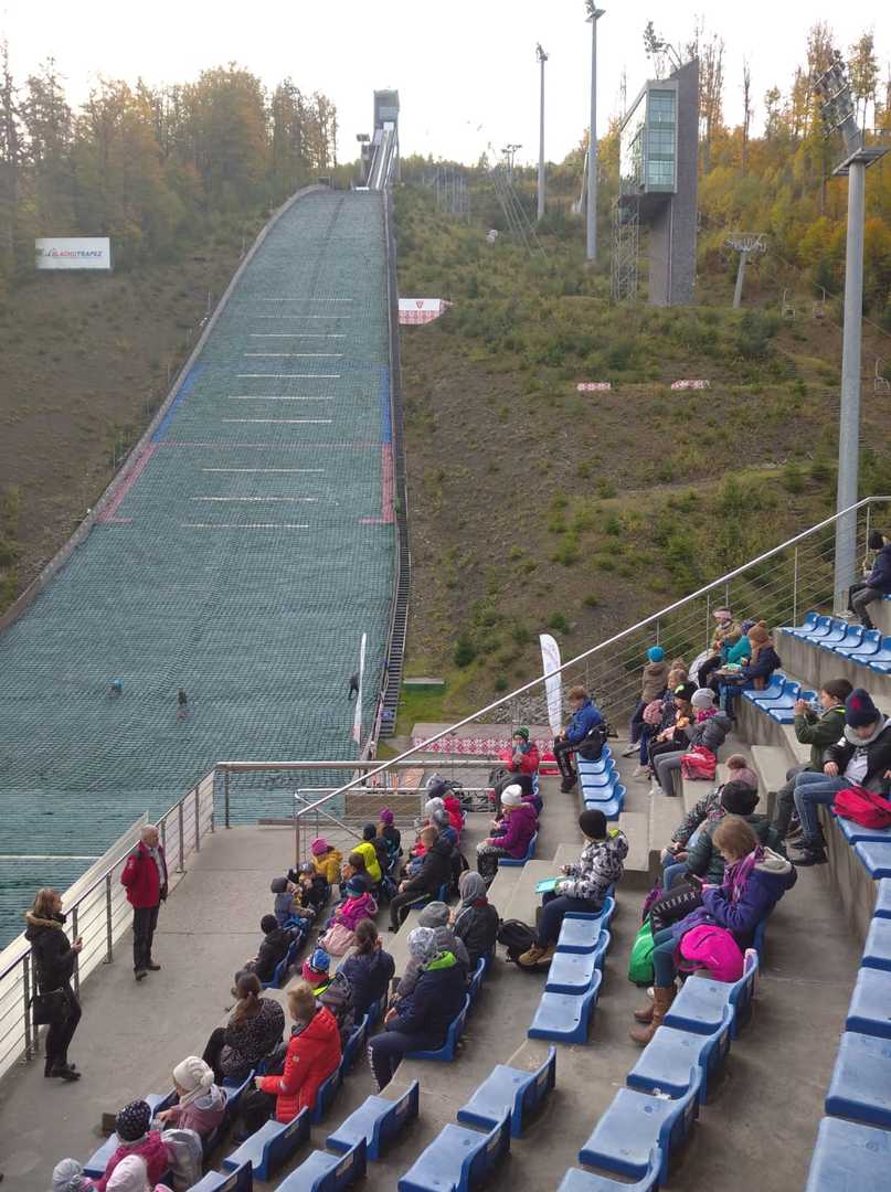 Pierwszym etapem było oglądanie zapory wodnej w Wiśle, poznaliśmy miejsce gdzie wypływa źródło rzeki Wisły. Byliśmy także gośćmi na dużej skoczni narciarskiej im. Adama Małysza, siedzieliśmy na widowni i podziwialiśmy cały obiekt.