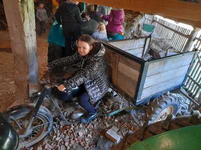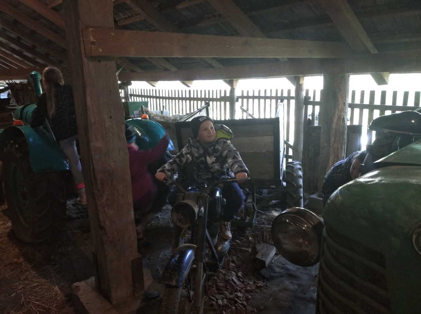 Kolejnym punktem zwiedzania było poznanie narzędzi dawnych, którymi posługiwał się człowiek, podczas orki, bronowania, siania, koszenia, młócenia zboża.