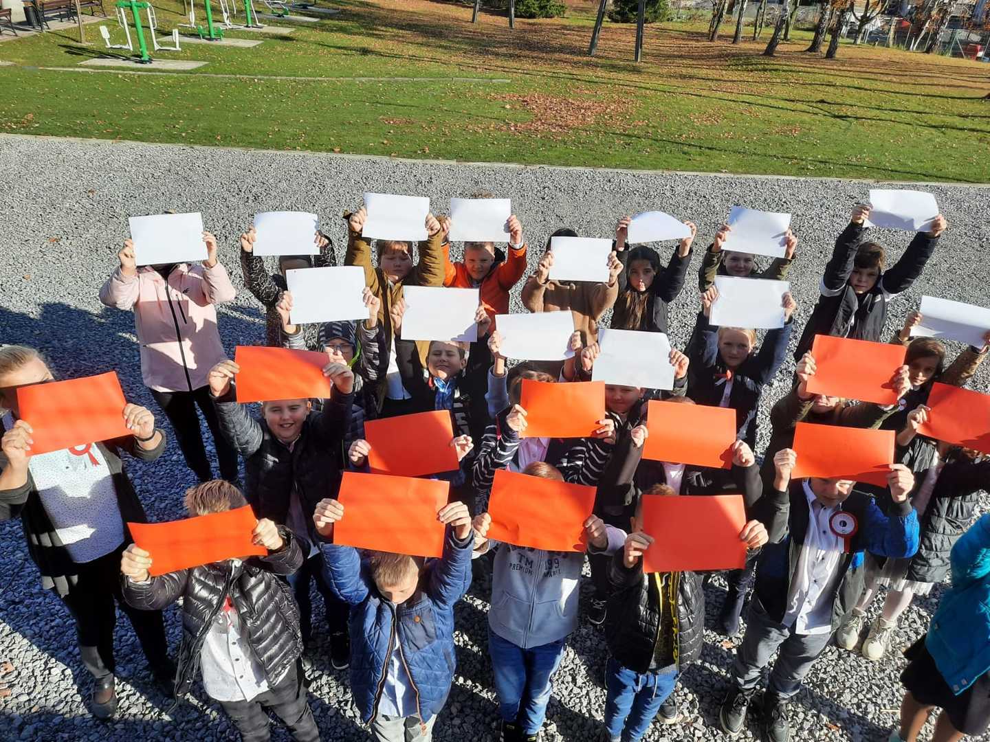 10 listopada nasza szkoła aktywnie włączyła się w obchody 103 rocznicy odzyskania przez Polskę niepodległości. W związku z tym świętem, uczniowie klas 1-3 wzbogacili swoją wiedzę o podstawowe informacje dotyczące historii Polski oraz wykonali kreatywne prace przedstawiające symbole narodowe. Z kolei klasy 4-6 zaśpiewały legionowe piosenki oraz wzięły udział w quizie wiedzy o Polsce. W mini konkursie klasy odpowiadały na pytania i zdobywały punkty za prawidłowe odpowiedzi. Liczył się refleks i wiedza. Na koniec każdy otrzymał słodki poczęstunek, a zwycięska klasa otrzymała dodatkową ocenę z historii. Dodatkowo o godzinie 11:11 cała szkoła odśpiewała hymn narodowy w ramach akcji „Szkoła do hymnu” oraz wykonano wspólne zdjęcie na wzór polskiej flagi. Dziękujemy wszystkim uczniom za tak aktywny udział w obchodach narodowego święta.