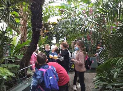 Kolejnym punktem programu było zwiedzanie Palmiarni, w której czekał na nas przewodnik i z pasją opowiedział o świecie roślin i oprowadził posześciu pawilonach gliwickiej Palmiarni. W tym obiekcie mogliśmy zobaczyć niepowtarzalne roślinny jak: rośliny użytkowe w postaci olbrzymich bananowców, rośliny przyprawowe oraz cytrusowe. Zainteresowaniem cieszyły się rośliny tropiku bujnie rozwijające się przez cały rok, zaś w pawilonie historycznym zobaczyliśmy najwyższe rośliny sięgające 18 metrów wysokości. W kolejnym pawilonie zaskoczyło nas piękno sukulentów, roślin, które przystosowały się do braku wody i ogromnych różnic temperatur. W ostatnim pawilonie zobaczyliśmy zbiorniki słodkowodne zadziwiające swoją fauną i florą oraz bogactwem ryb. Na koniec wszyscy mogli skorzystać ze smakowitego posiłku w McDonaldzie.