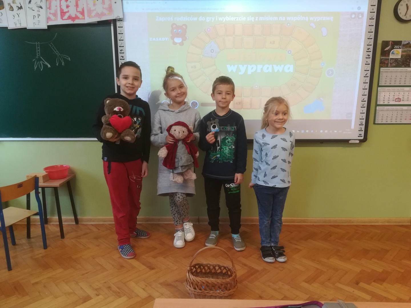 W ramach propagowania wśród uczniów integracji oraz właściwych relacji między członkami społeczności szkolnej Samorząd Uczniowski przygotował ciekawe zajęcia dla uczniów klasy pierwszej z okazji Dnia Pluszowego Misia. Pierwszoklasiści poznali historię tej niezwykłej maskotki, rozwiązywali „misiowe” zadania, śpiewali piosenki, bawili się w gry ruchowe związane z misiami oraz rozwiązywali quiz i uczestniczyli w grach – zabawach online. Na zakończenie nasi najmłodsi uczniowie otrzymali pamiątkowe zawieszki.