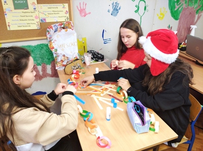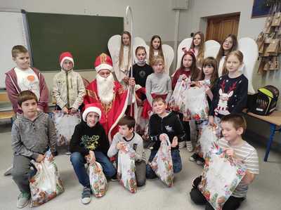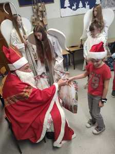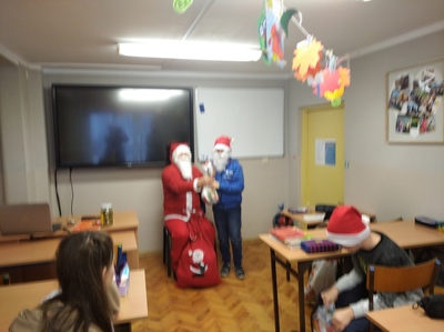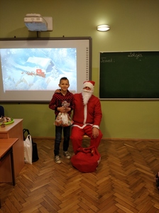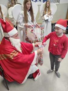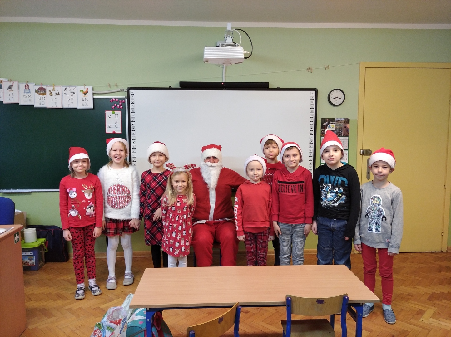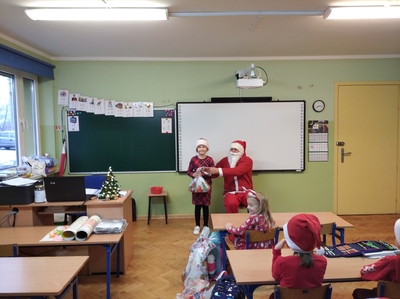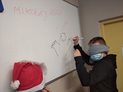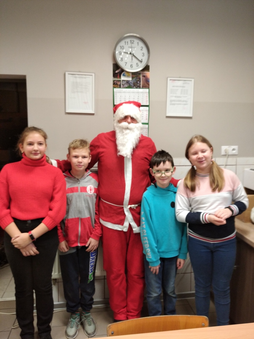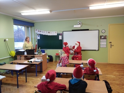 Dzisiejszy dzień w naszej szkole był niezwykły. Uczniowie przyszli w wesołych czapeczkach, a kolorem dominującym ich ubrań był czerwony. Od rana było słychać wesołą mikołajkową i przedświąteczną muzykę. W każdej klasie lekcje przebiegały w miłym nastroju, a to przez to, że odwiedził je Święty Mikołaj, który chętnie z dziećmi rozmawiał, pozował do zdjęć i rozdawał upominki ufundowane przez Radę Rodziców. Ponadto w każdej klasie wychowawcy i nauczyciele przygotowali dodatkowo szereg atrakcji, zabaw, quizów, piosenek oraz poczęstunek. Uczniowie między innymi rysowali Mikołaja z zamkniętymi oczami, rywalizowali w wykonaniu najdłuższego łańcucha choinkowego, malowali figurkę Mikołaja z gipsu, grali w świąteczne memory. Na języku polskim i angielskim również dominowała mikołajkowa atmosfera, zobaczyli prezentację z Mikołajem w roli głównej oraz wykonywali mikołajkowe zadania polonistyczne. To był bardzo udany i wesoły dzień!