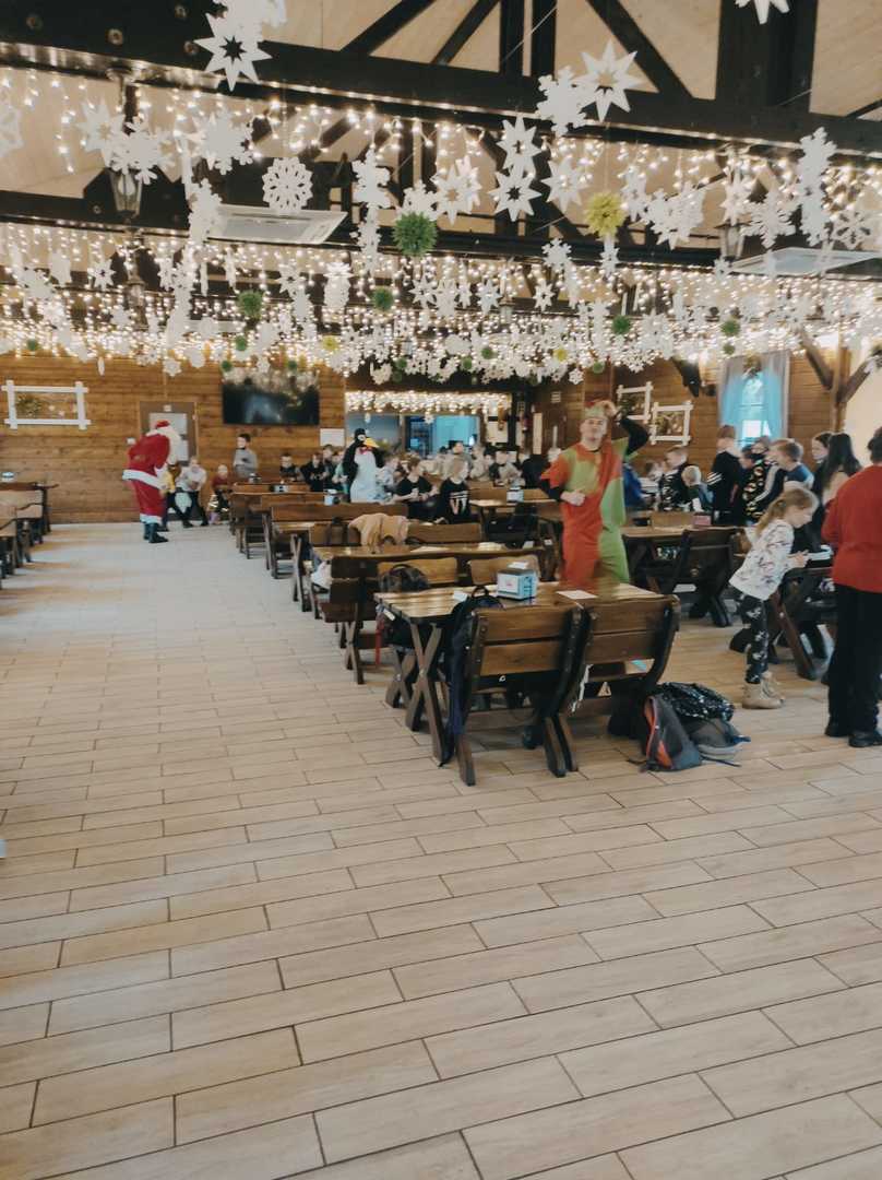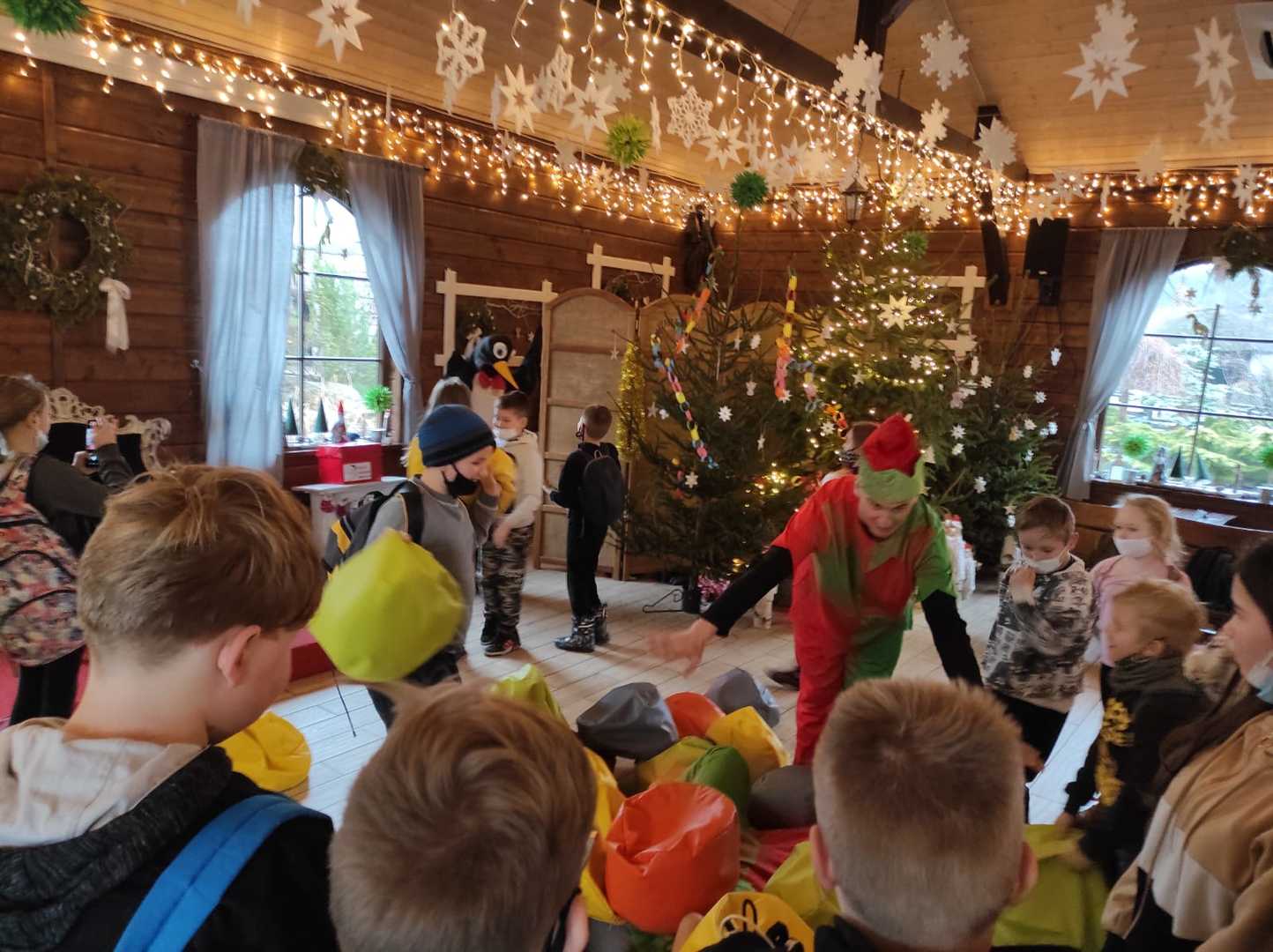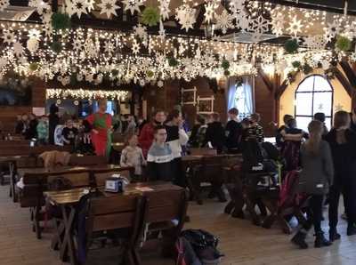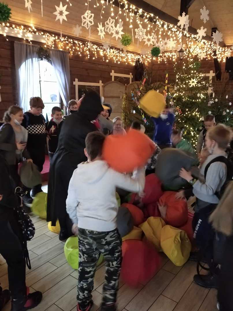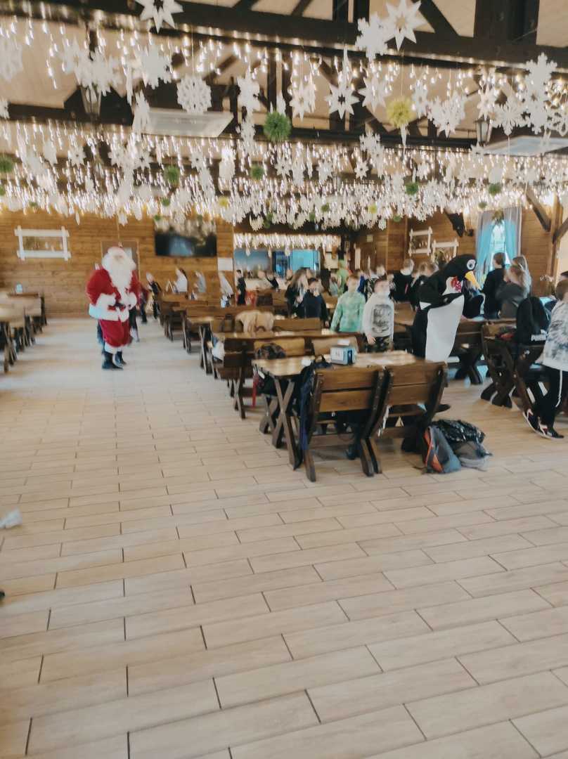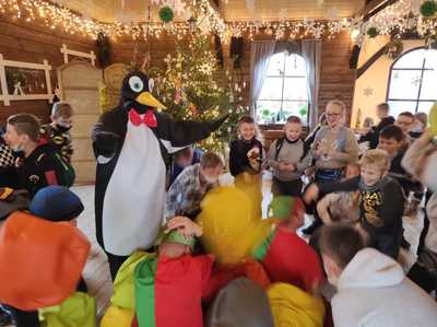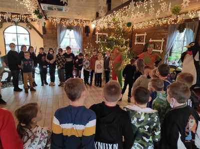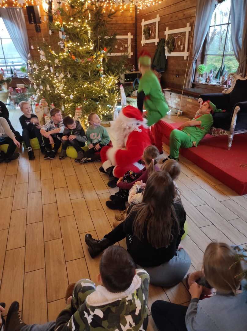 Podróż trwała dwie godziny. Po przybyciu na miejsce pierwszym punktem wycieczki było kino, w którym obejrzeliśmy film o tematyce świątecznej pod tytułem ,,Grinch". Film bardzo nam się podobał. Opowiadał on o tym, jak mieszkańcy Ktosiowa wyczekiwali Świąt Bożego Narodzenia. Zielony stwór Grinch postanowił zrobić wszystko, aby zepsuć święta mieszkańcom miasteczka. Jednak finał filmu był miły i pozytywny, ponieważ główny bohater w końcu zaczął cieszyć się świętami. Następnie udaliśmy się na dobry obiad, a potem poszliśmy do Chaty Mikołaja, gdzie czekały na nas elfy z pingwinem. Przy muzyce i tańcach czekaliśmy na przybycie świętego Mikołaja. Kiedy Mikołaj przyszedł, przywitał się radośnie z nami, a później wspólnie tańczyliśmy i rozmawialiśmy. Następnie mogliśmy sobie zrobić pamiątkowe zdjęcie z pingwinem, elfami i Mikołajem. Potem pod okiem elfów wykonaliśmy świąteczne lampiony, które zabraliśmy ze sobą do domu. Przed odjazdem mieliśmy chwilę czasu na zakup pamiątek.