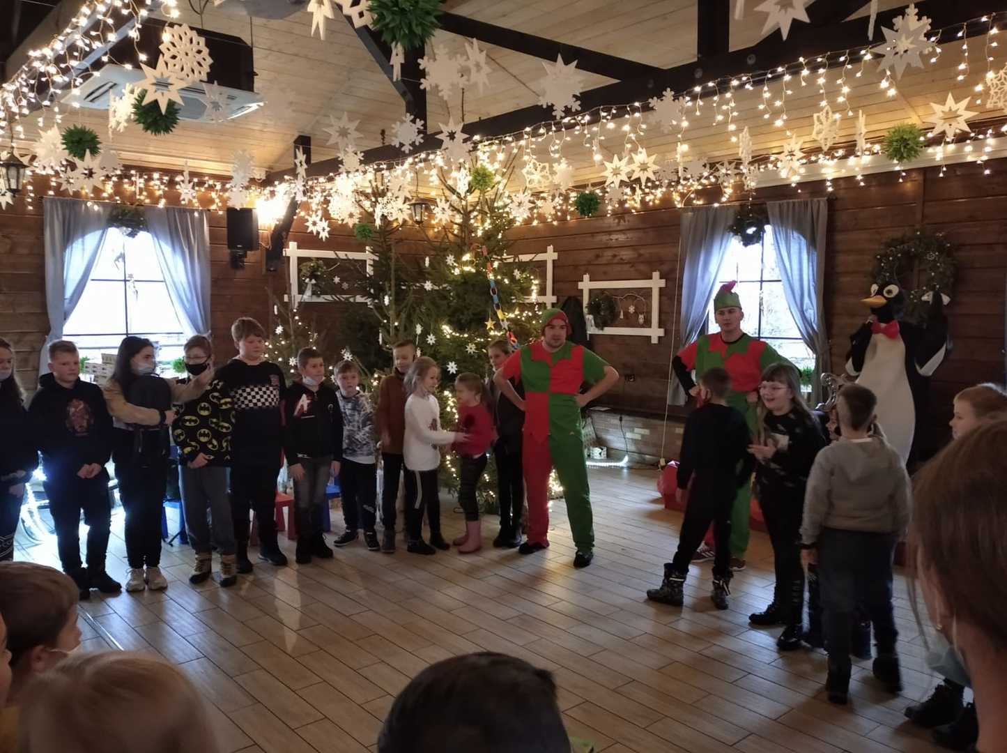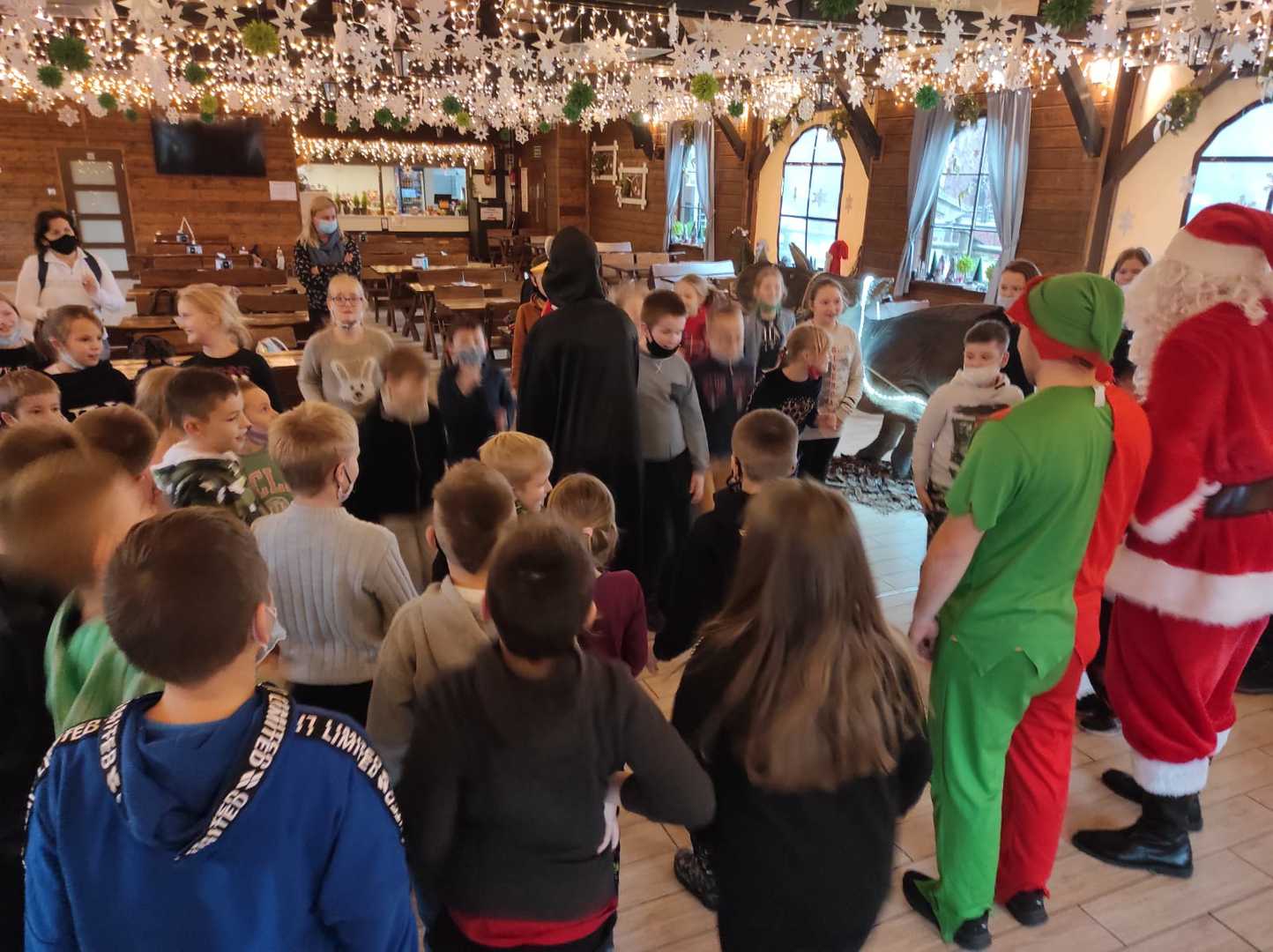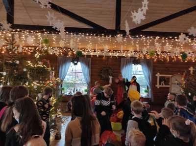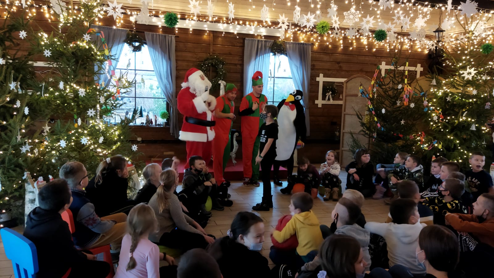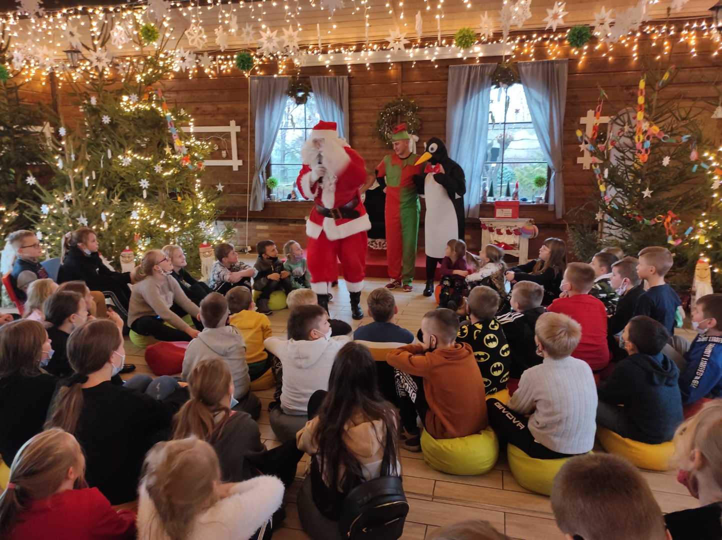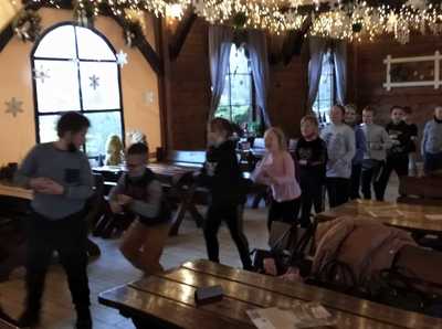 Podróż trwała dwie godziny. Po przybyciu na miejsce pierwszym punktem wycieczki było kino, w którym obejrzeliśmy film o tematyce świątecznej pod tytułem ,,Grinch". Film bardzo nam się podobał. Opowiadał on o tym, jak mieszkańcy Ktosiowa wyczekiwali Świąt Bożego Narodzenia. Zielony stwór Grinch postanowił zrobić wszystko, aby zepsuć święta mieszkańcom miasteczka. Jednak finał filmu był miły i pozytywny, ponieważ główny bohater w końcu zaczął cieszyć się świętami. Następnie udaliśmy się na dobry obiad, a potem poszliśmy do Chaty Mikołaja, gdzie czekały na nas elfy z pingwinem. Przy muzyce i tańcach czekaliśmy na przybycie świętego Mikołaja. Kiedy Mikołaj przyszedł, przywitał się radośnie z nami, a później wspólnie tańczyliśmy i rozmawialiśmy. Następnie mogliśmy sobie zrobić pamiątkowe zdjęcie z pingwinem, elfami i Mikołajem. Potem pod okiem elfów wykonaliśmy świąteczne lampiony, które zabraliśmy ze sobą do domu. Przed odjazdem mieliśmy chwilę czasu na zakup pamiątek.