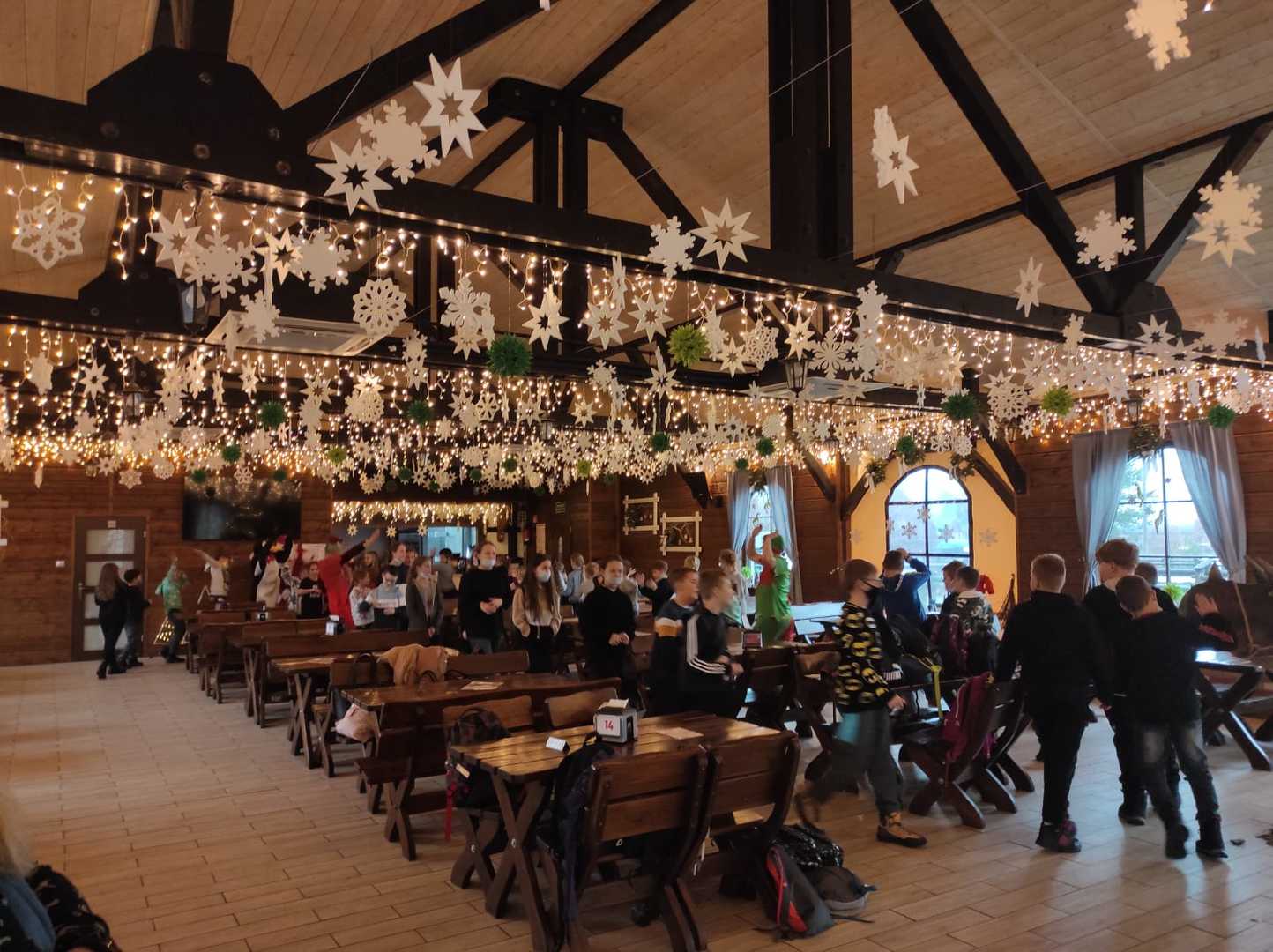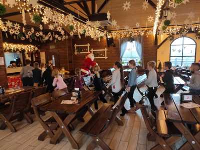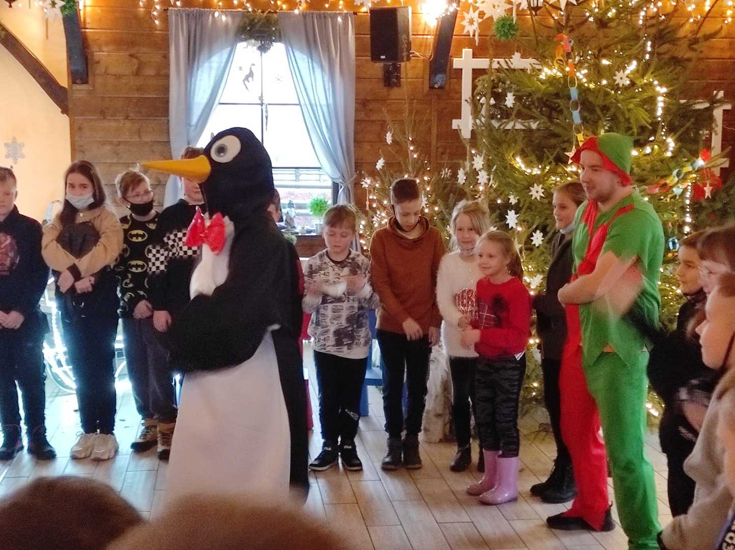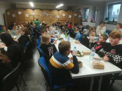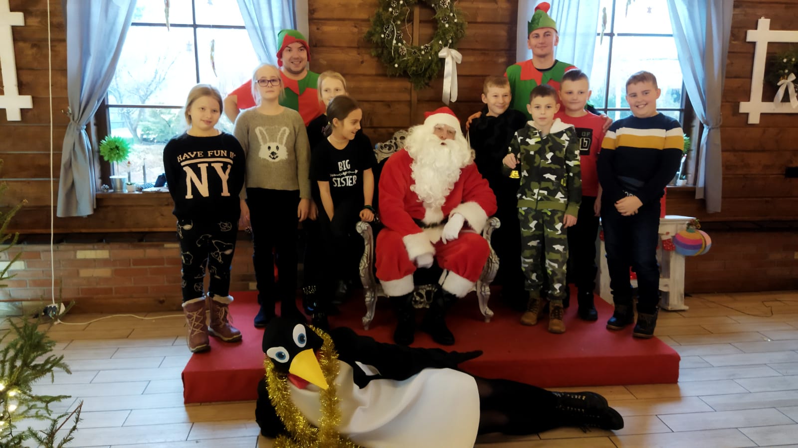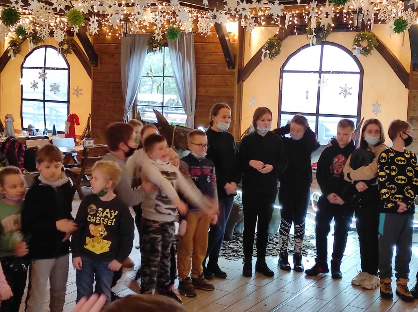 Podróż trwała dwie godziny. Po przybyciu na miejsce pierwszym punktem wycieczki było kino, w którym obejrzeliśmy film o tematyce świątecznej pod tytułem ,,Grinch". Film bardzo nam się podobał. Opowiadał on o tym, jak mieszkańcy Ktosiowa wyczekiwali Świąt Bożego Narodzenia. Zielony stwór Grinch postanowił zrobić wszystko, aby zepsuć święta mieszkańcom miasteczka. Jednak finał filmu był miły i pozytywny, ponieważ główny bohater w końcu zaczął cieszyć się świętami. Następnie udaliśmy się na dobry obiad, a potem poszliśmy do Chaty Mikołaja, gdzie czekały na nas elfy z pingwinem. Przy muzyce i tańcach czekaliśmy na przybycie świętego Mikołaja. Kiedy Mikołaj przyszedł, przywitał się radośnie z nami, a później wspólnie tańczyliśmy i rozmawialiśmy. Następnie mogliśmy sobie zrobić pamiątkowe zdjęcie z pingwinem, elfami i Mikołajem. Potem pod okiem elfów wykonaliśmy świąteczne lampiony, które zabraliśmy ze sobą do domu. Przed odjazdem mieliśmy chwilę czasu na zakup pamiątek.