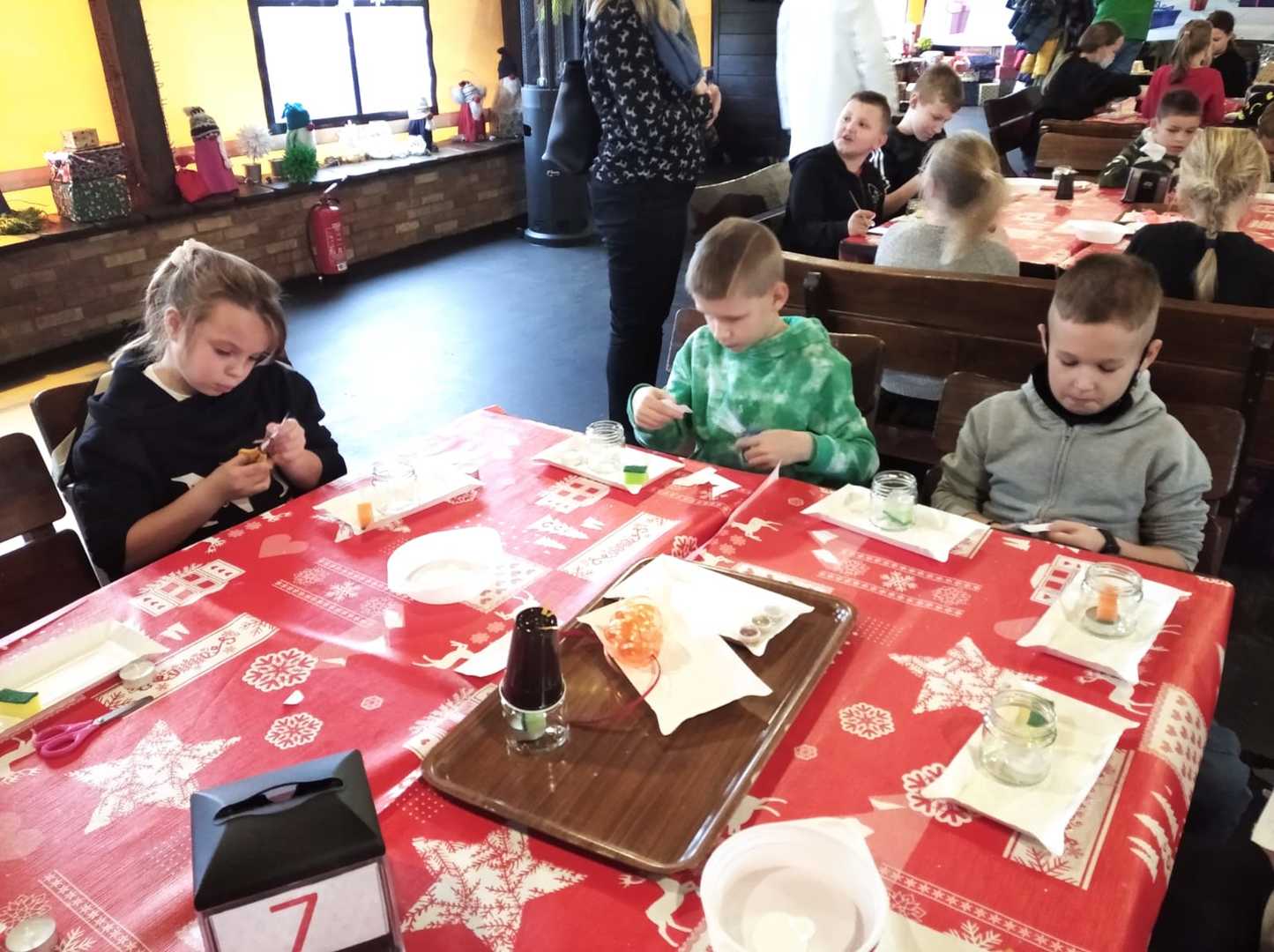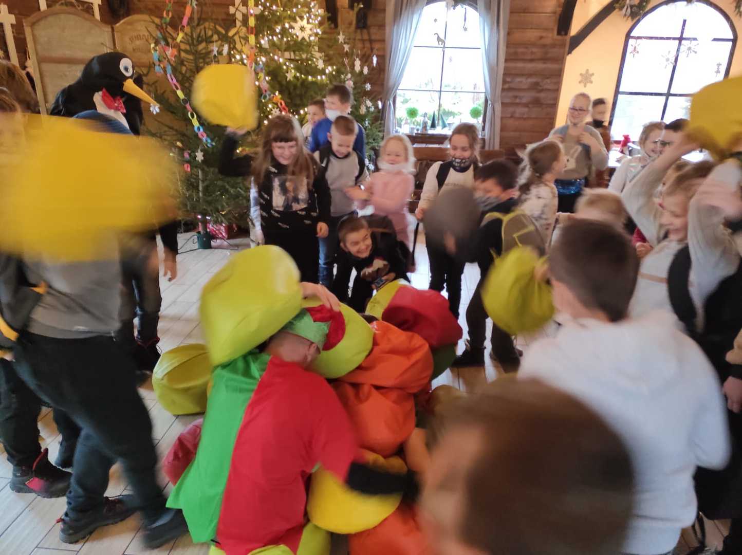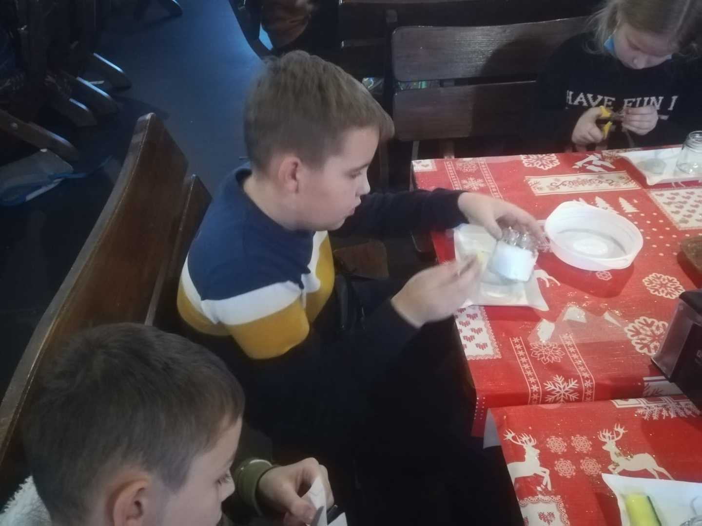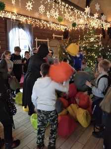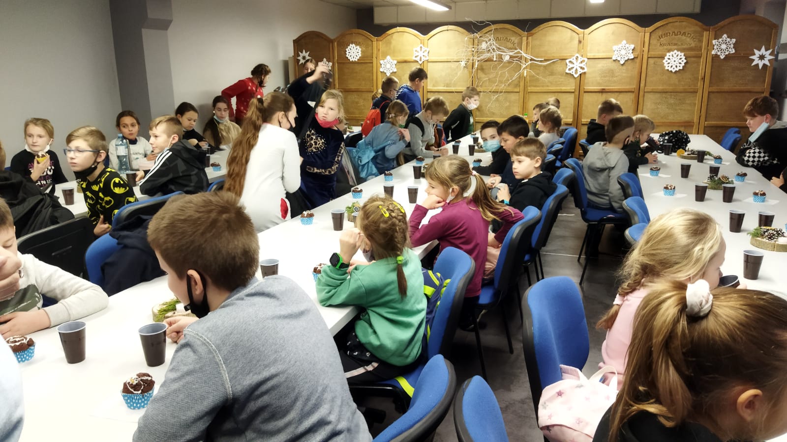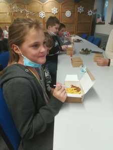 Podróż trwała dwie godziny. Po przybyciu na miejsce pierwszym punktem wycieczki było kino, w którym obejrzeliśmy film o tematyce świątecznej pod tytułem ,,Grinch". Film bardzo nam się podobał. Opowiadał on o tym, jak mieszkańcy Ktosiowa wyczekiwali Świąt Bożego Narodzenia. Zielony stwór Grinch postanowił zrobić wszystko, aby zepsuć święta mieszkańcom miasteczka. Jednak finał filmu był miły i pozytywny, ponieważ główny bohater w końcu zaczął cieszyć się świętami. Następnie udaliśmy się na dobry obiad, a potem poszliśmy do Chaty Mikołaja, gdzie czekały na nas elfy z pingwinem. Przy muzyce i tańcach czekaliśmy na przybycie świętego Mikołaja. Kiedy Mikołaj przyszedł, przywitał się radośnie z nami, a później wspólnie tańczyliśmy i rozmawialiśmy. Następnie mogliśmy sobie zrobić pamiątkowe zdjęcie z pingwinem, elfami i Mikołajem. Potem pod okiem elfów wykonaliśmy świąteczne lampiony, które zabraliśmy ze sobą do domu. Przed odjazdem mieliśmy chwilę czasu na zakup pamiątek.