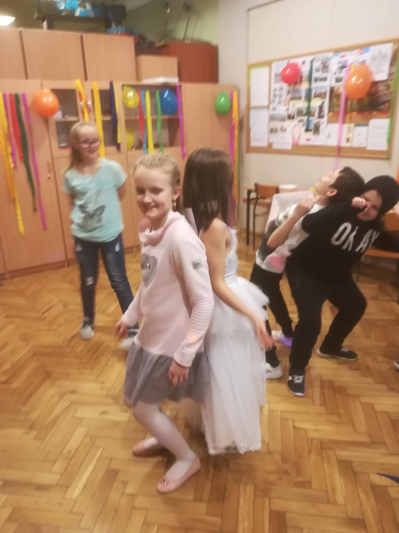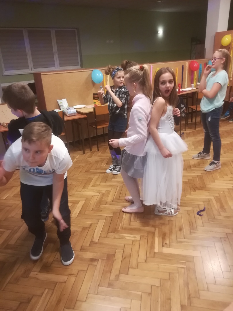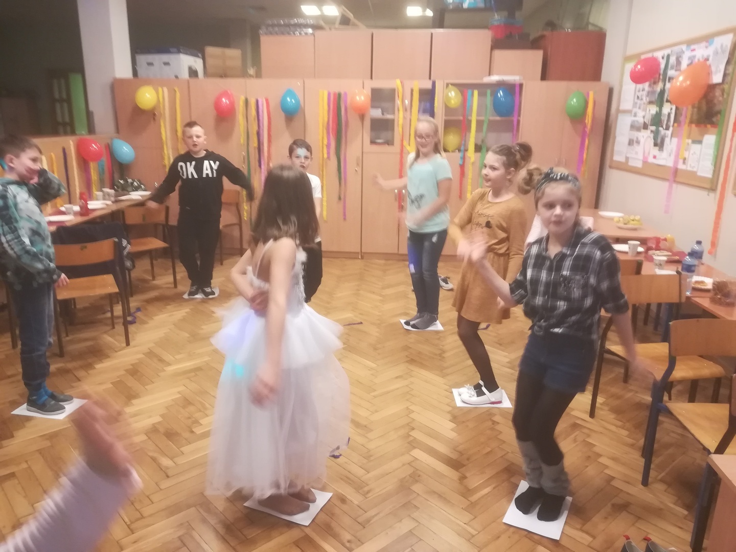11 lutego uczniowie klasy czwartej wraz z wychowawcą bawili się w godzinach wieczornych podczas swojej pierwszej dyskoteki karnawałowej. Oprócz popisów tanecznych nasi czwartoklasiści brali udział w licznych zabawach. Swoich sił próbowali m.in. na „gorących krzesłach”, w zabawie „zatańcz jak ja”, „wężowy taniec”, „limbo” czy „taniec - zamrażaniec”. Jednak największą atrakcją okazał się „taniec z kartkami”. W przerwach pomiędzy różnymi konkurencjami tanecznymi nasi uczniowie korzystali z poczęstunku przygotowanego przez rodziców. Po skończonej zabawie wszyscy w dobrych humorach wrócili do domu. Cieszymy się, że nasi uczniowie podtrzymują tradycje karnawałowe.